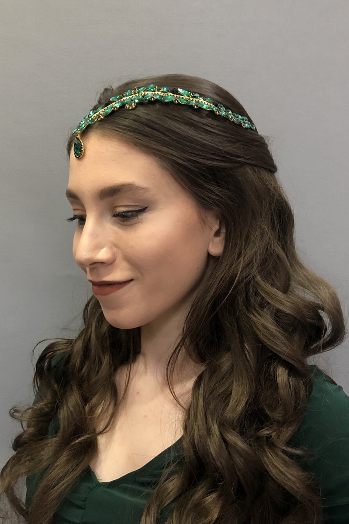 Alhena Model Yeşil Alınlık Saç Aksesuarı (TAC-377)