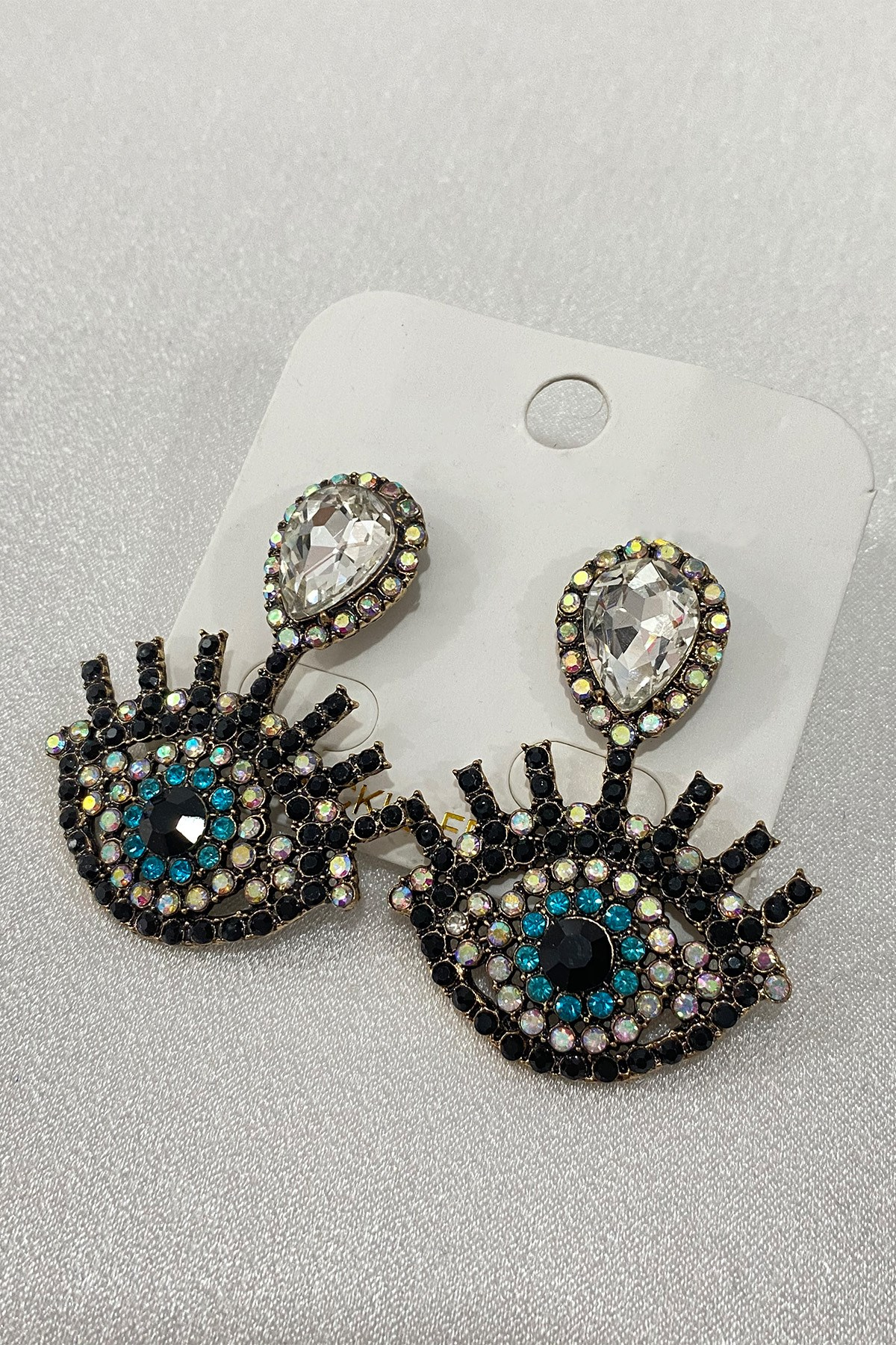 أقراط عين الرموش السوداء ذات تفاصيل قطرة بيضاء