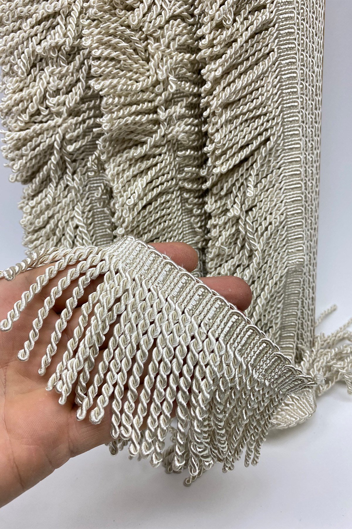 مرقة الكريمة شراشيب مرقة مرقة شرابة 7 سم يباع المنتج بطول 1 متر. يمكن استخدامه لأغراض الديكور في تزيين الأثاث والأريكة ، وزخارف السيارات ، والإكسسوارات ، والملابس ، وإكسسوارات النسيج.