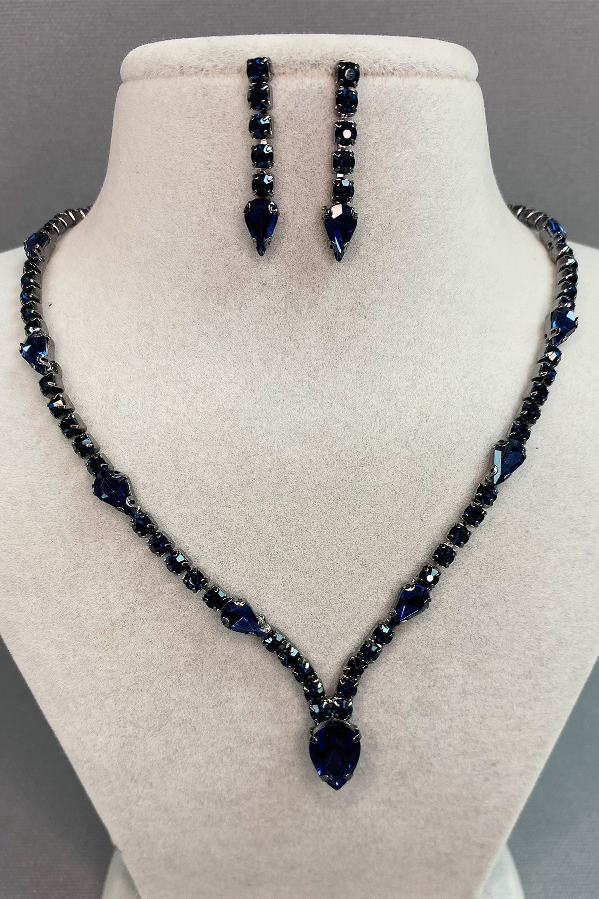 طقم أقراط عقد من حجر الكريستال الأزرق الداكن فيجا