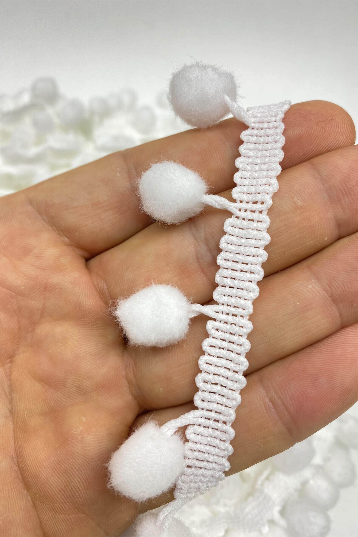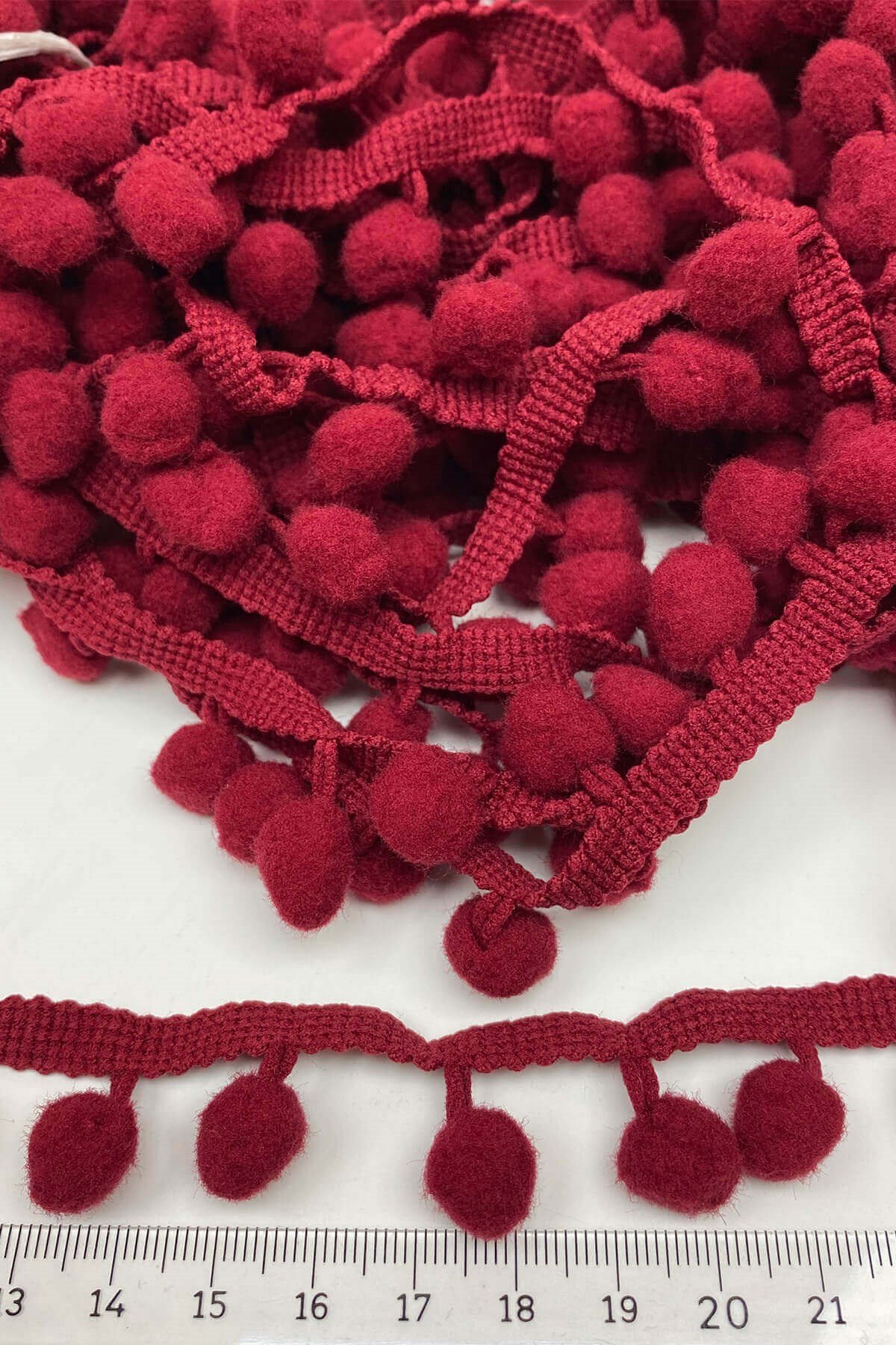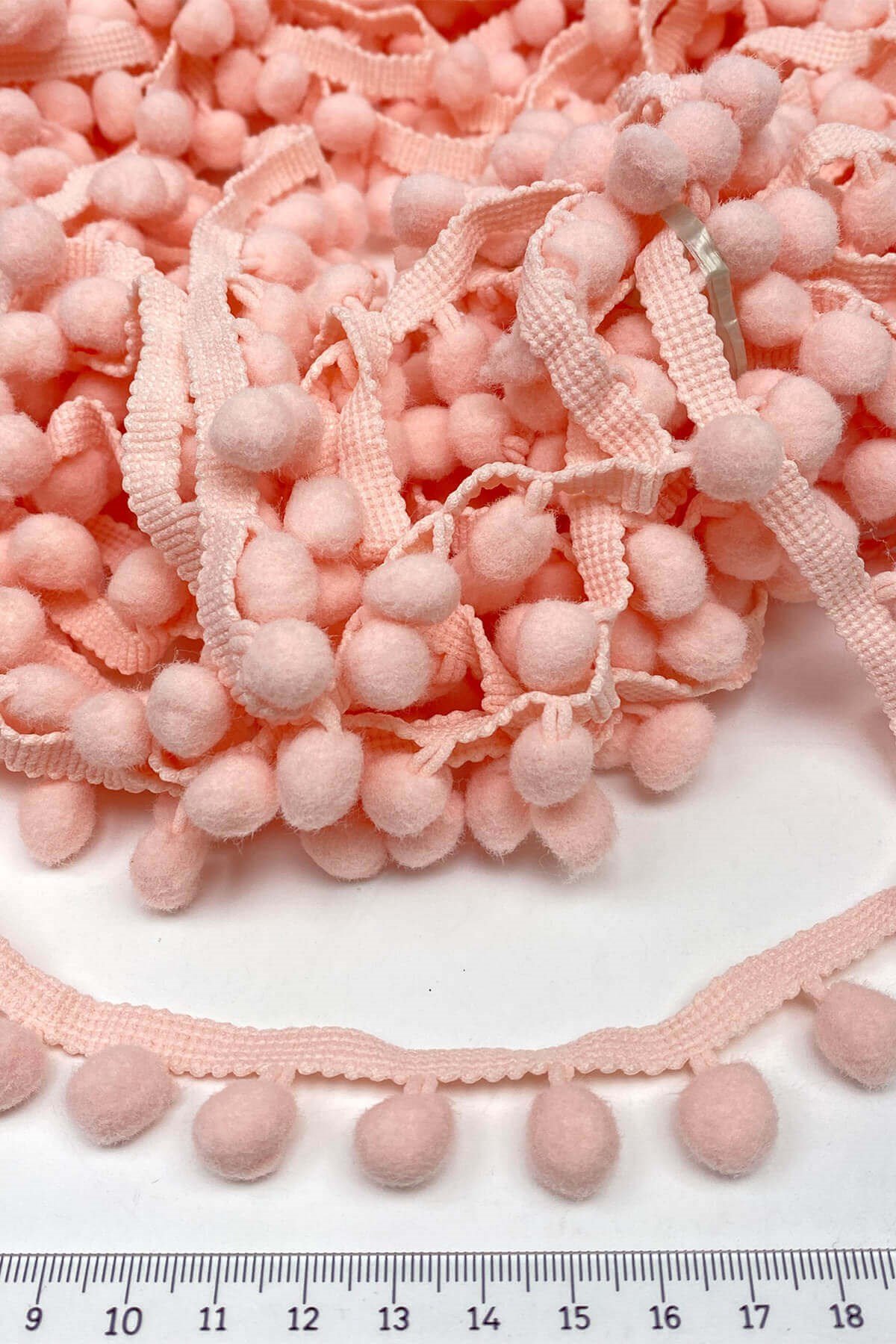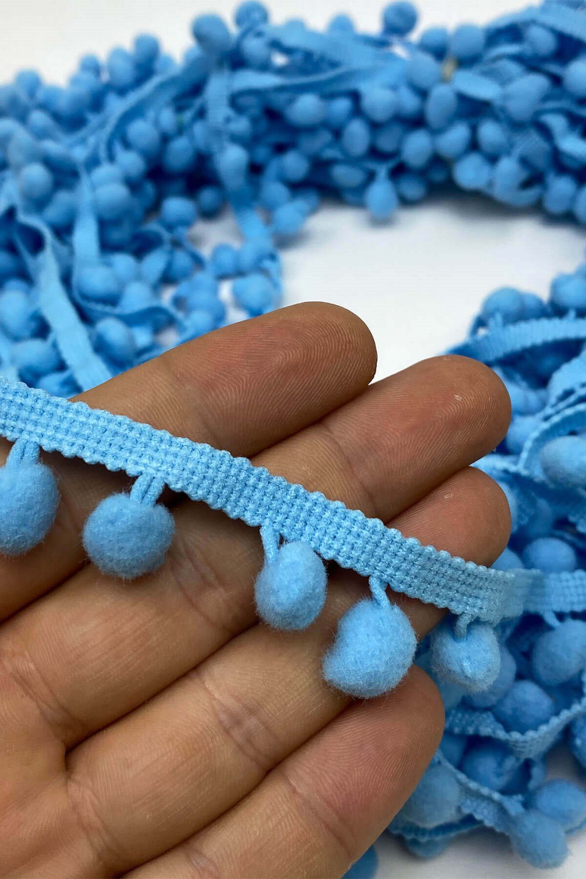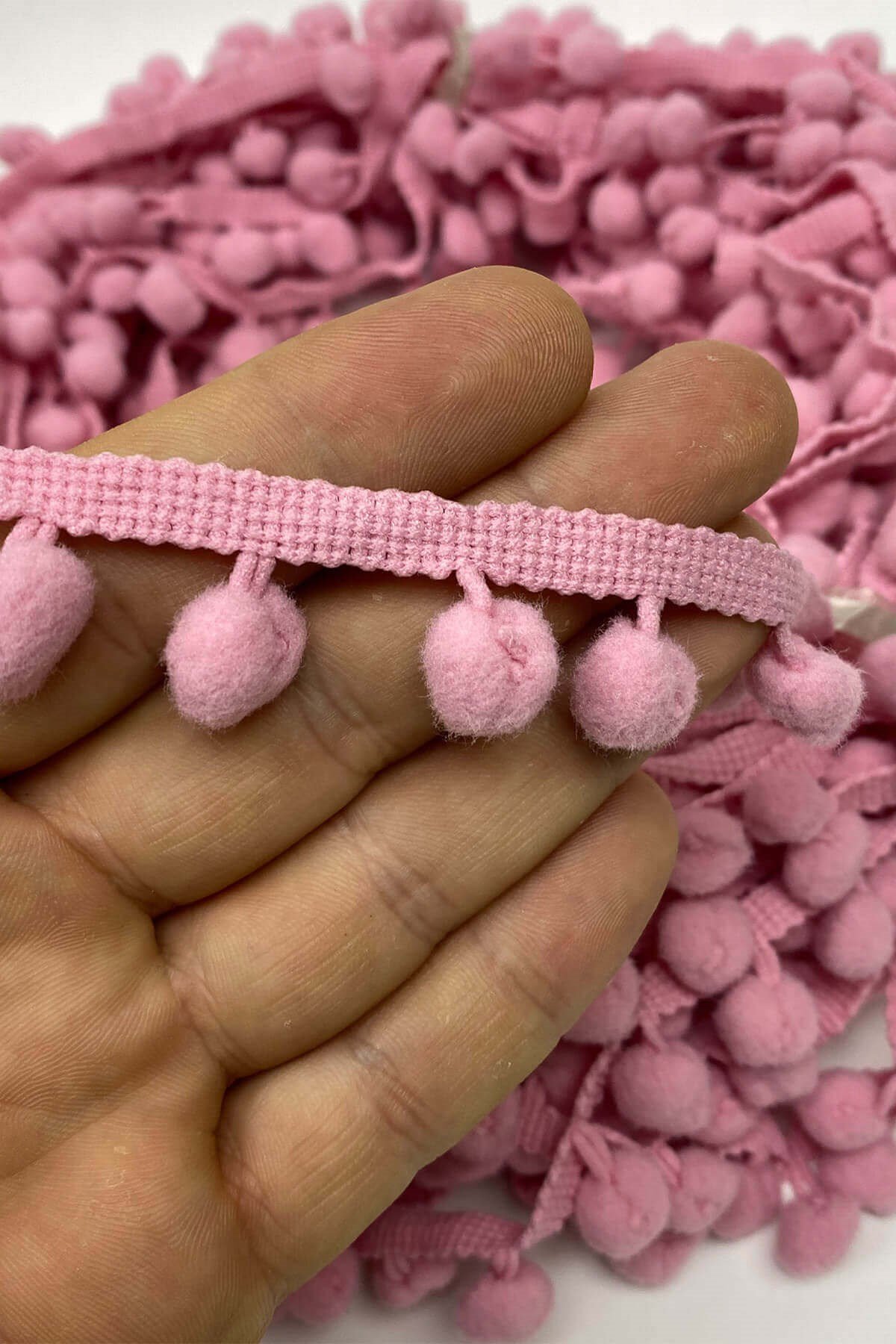 Pompom Ribbon 20 mt عبارة عن كرات من الكريات الشريطية يمكنك استخدامها بكل سرور في ديكورات المنسوجات المنزلية وجميع أعمال الحياكة وديكورات الهوايات المختلفة وزخارف الملابس والإكسسوارات.