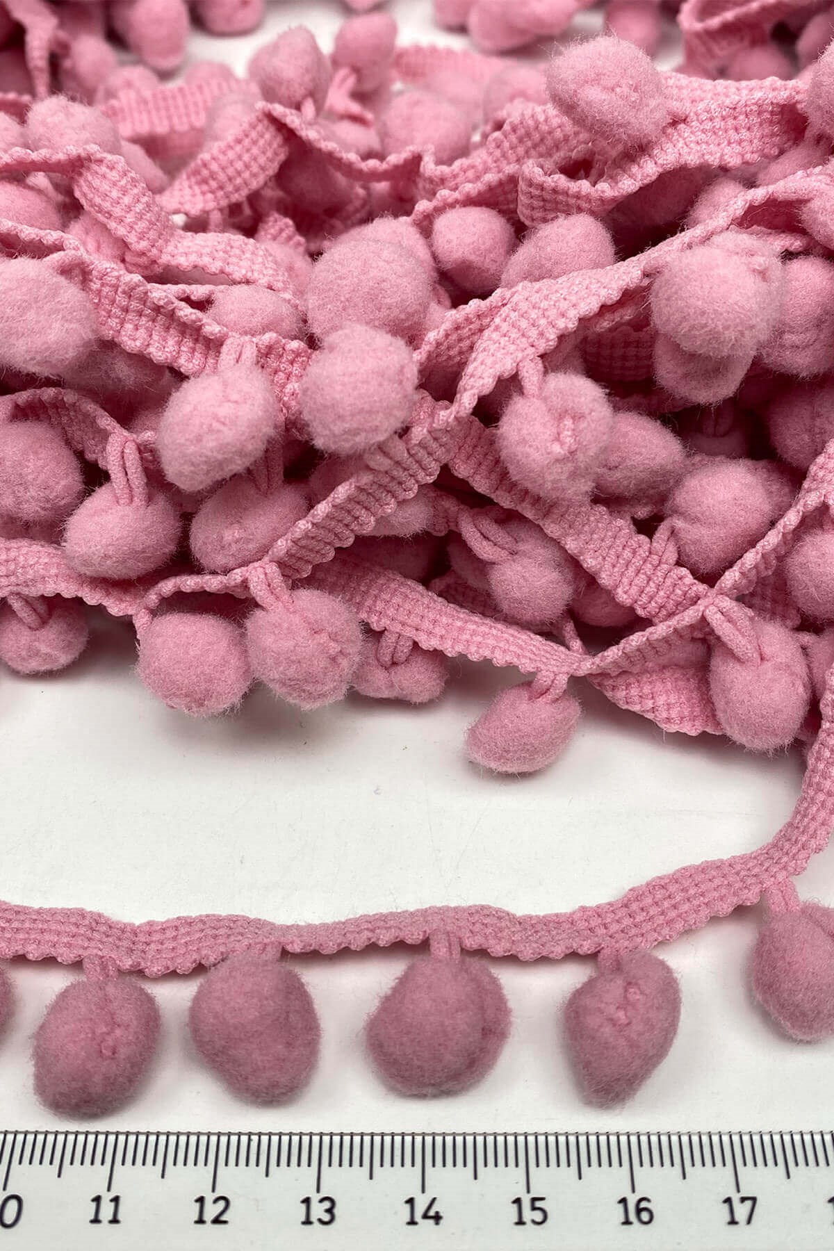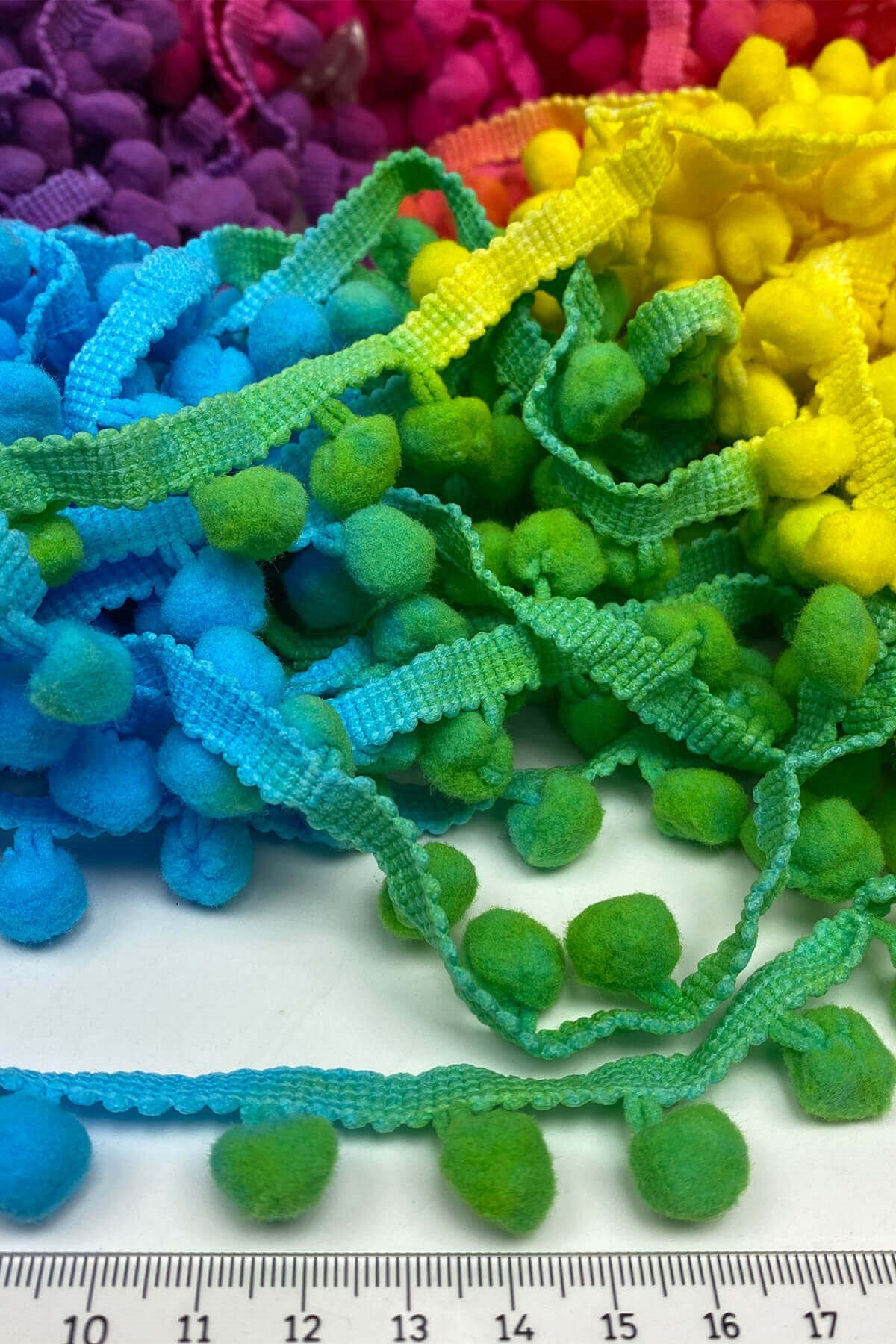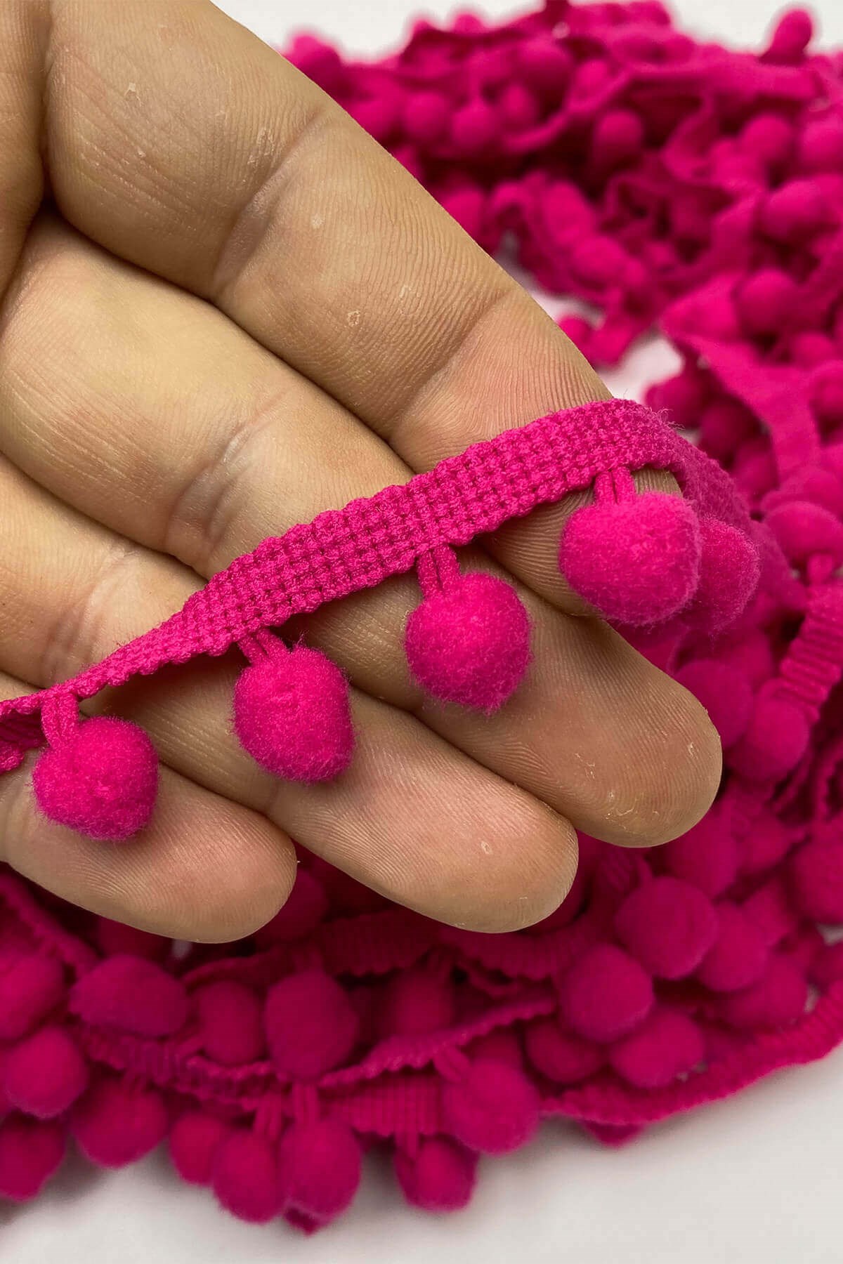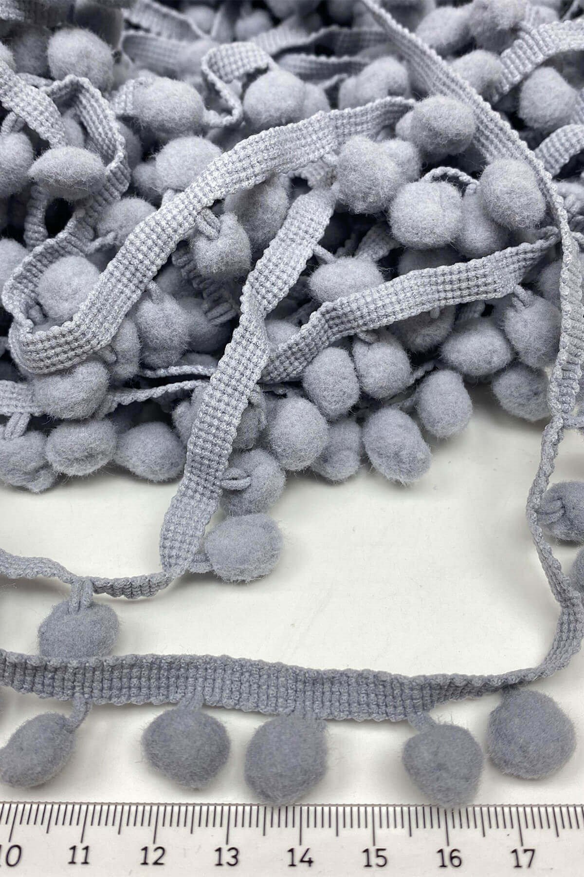 Pompom Ribbon 20 mt عبارة عن كرات من الكريات الشريطية يمكنك استخدامها بكل سرور في ديكورات المنسوجات المنزلية وجميع أعمال الحياكة وديكورات الهوايات المختلفة وزخارف الملابس والإكسسوارات.