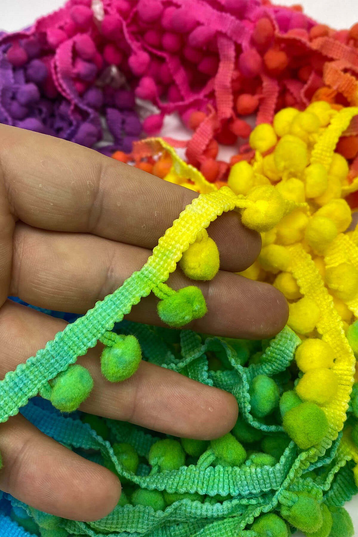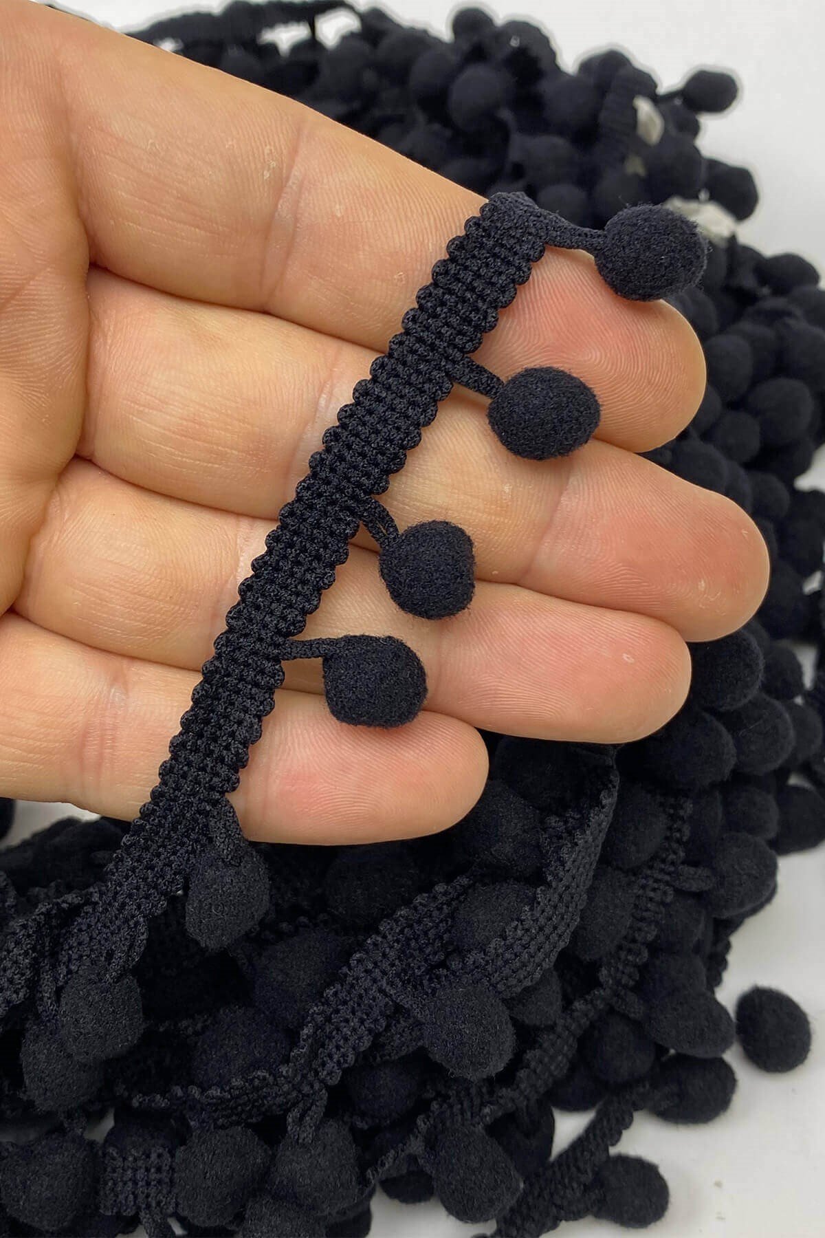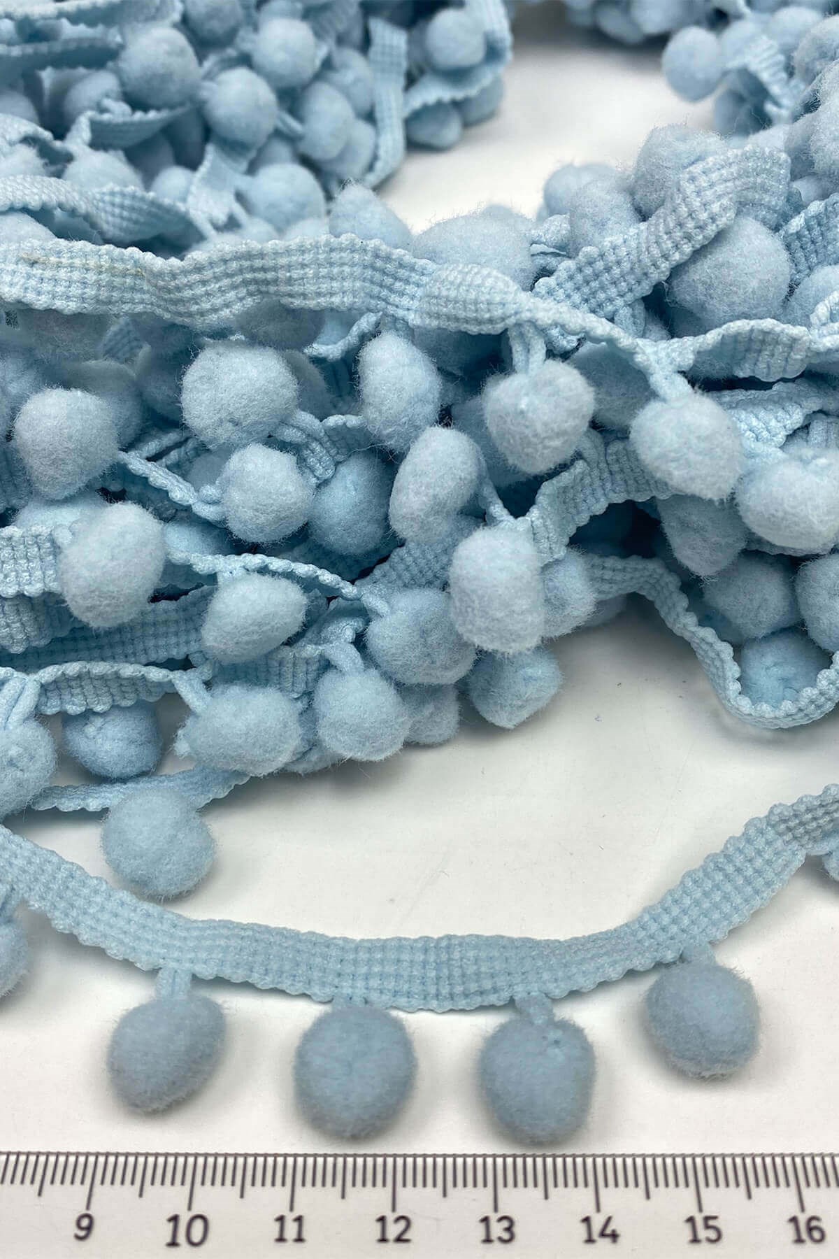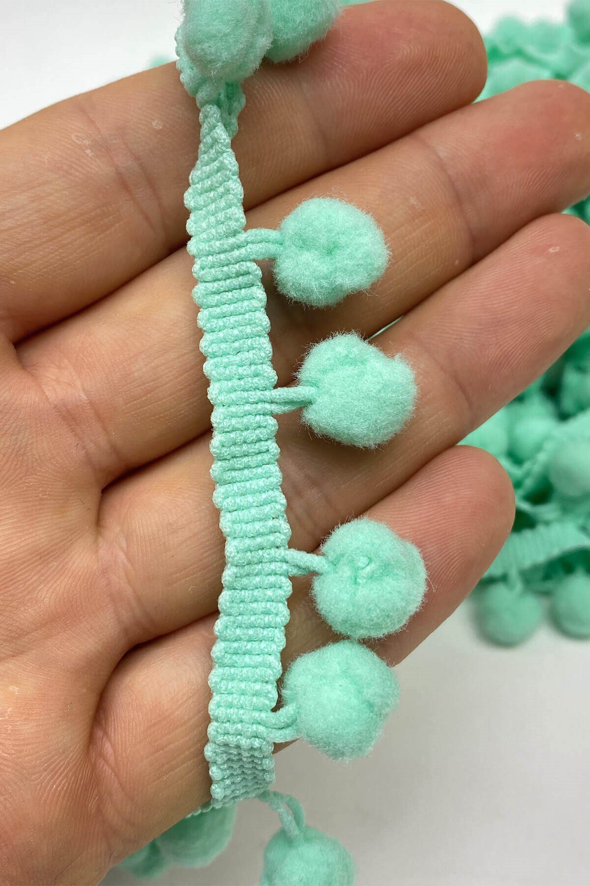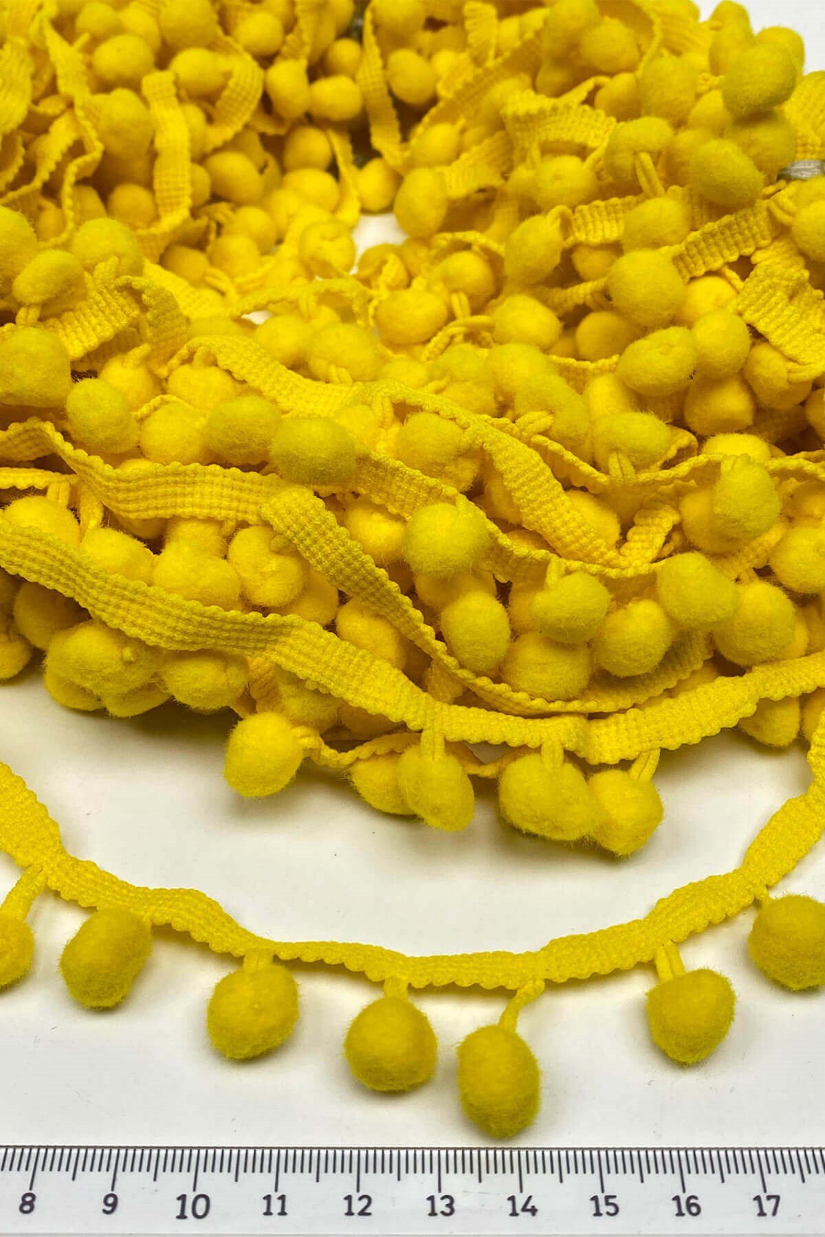 Pompom Ribbon 20 mt عبارة عن كرات من الكريات الشريطية يمكنك استخدامها بكل سرور في ديكورات المنسوجات المنزلية وجميع أعمال الحياكة وديكورات الهوايات المختلفة وزخارف الملابس والإكسسوارات.