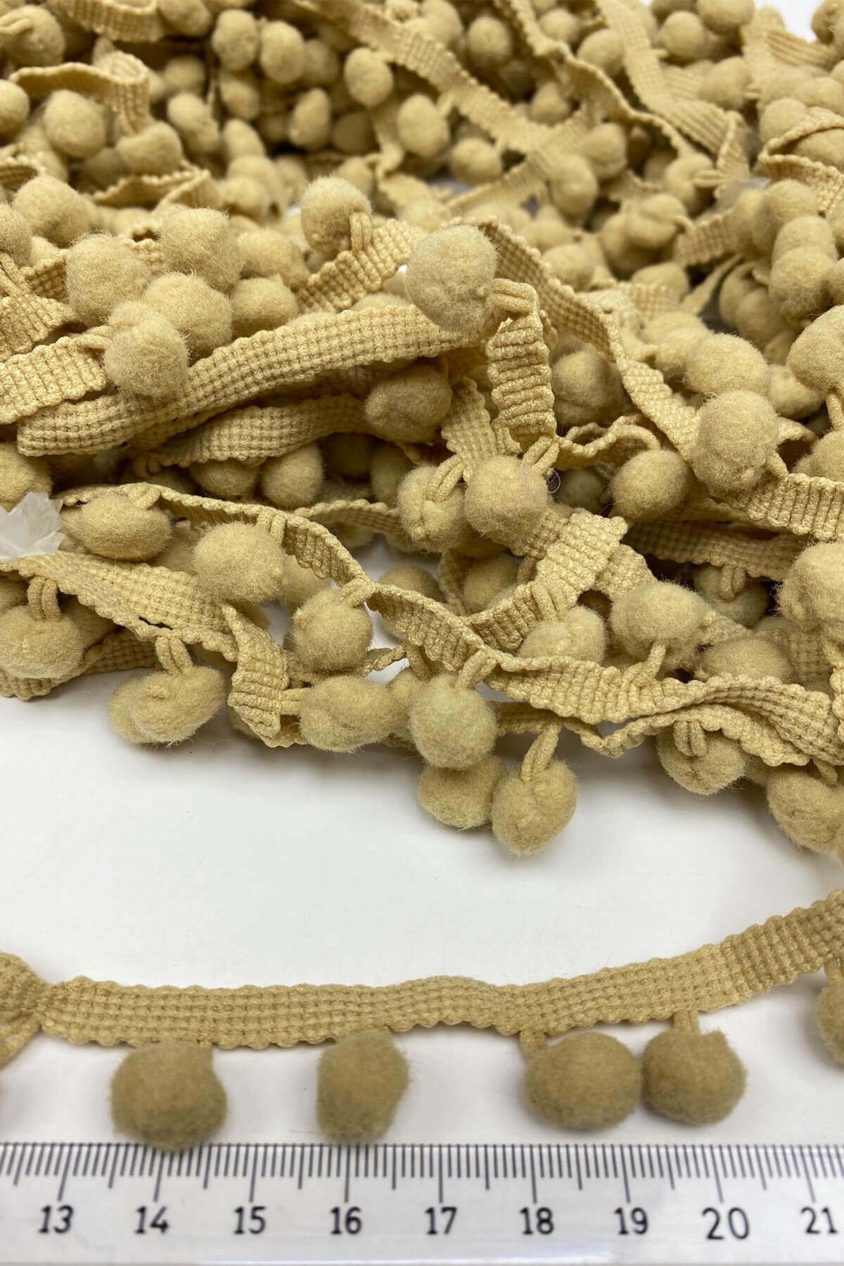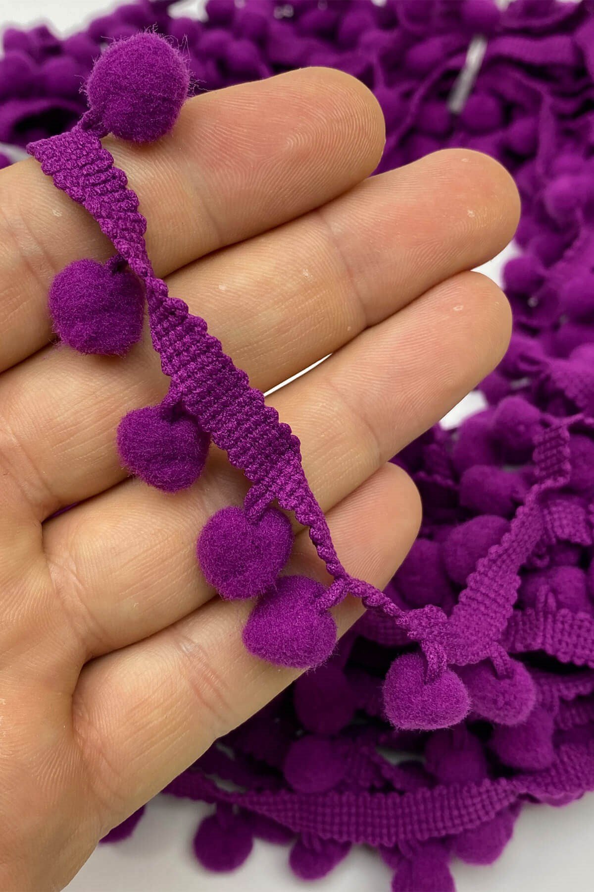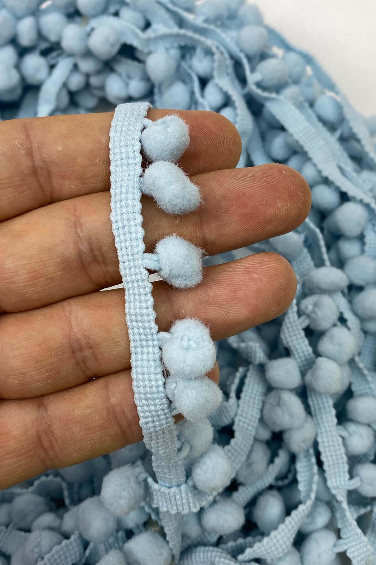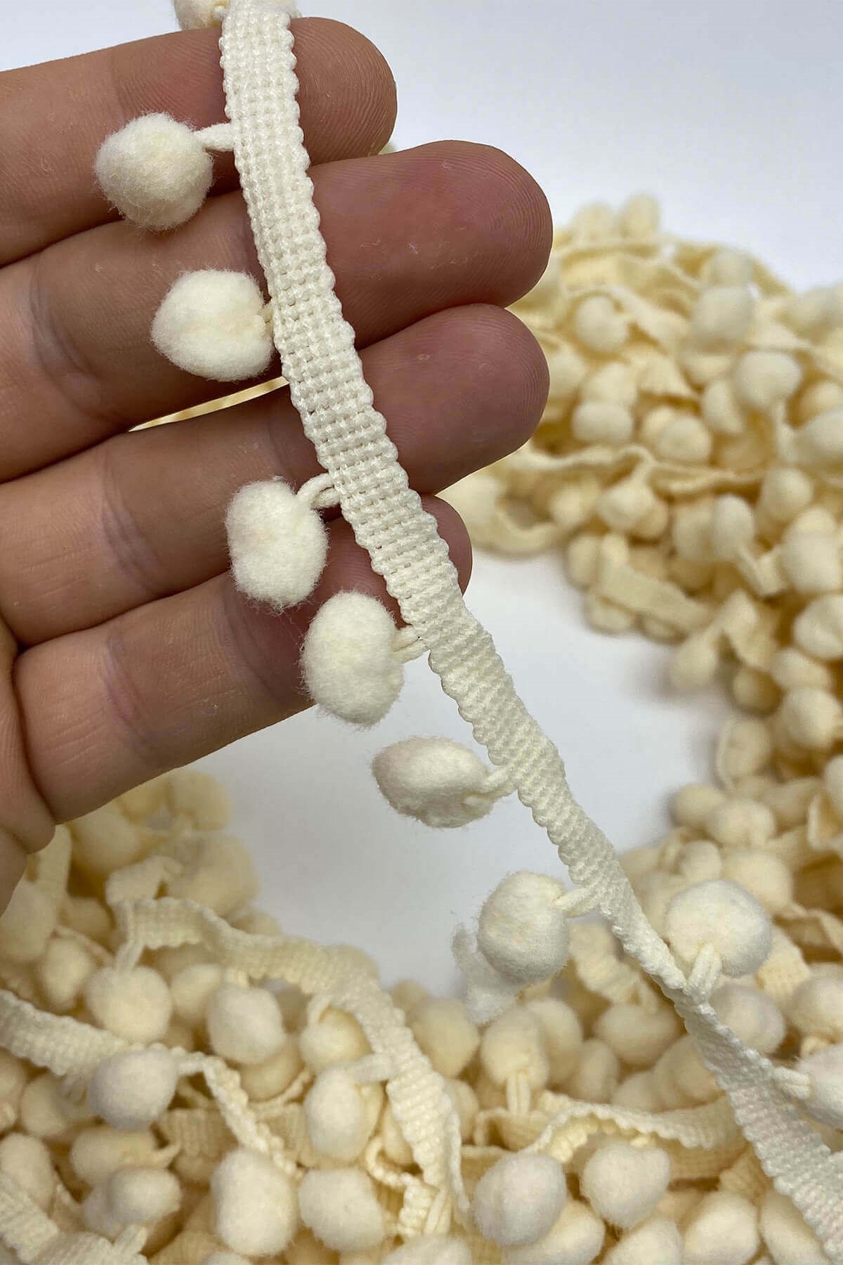 Pompom Ribbon 20 mt عبارة عن كرات من الكريات الشريطية يمكنك استخدامها بكل سرور في ديكورات المنسوجات المنزلية وجميع أعمال الحياكة وديكورات الهوايات المختلفة وزخارف الملابس والإكسسوارات.