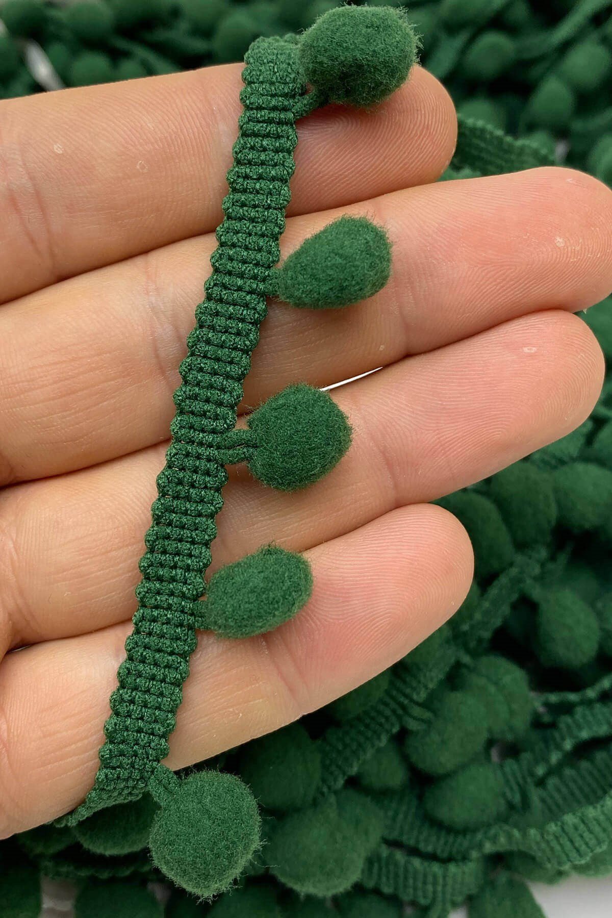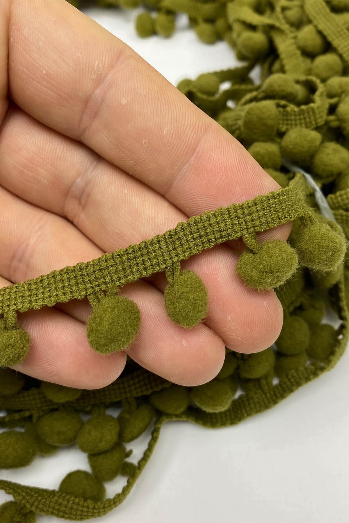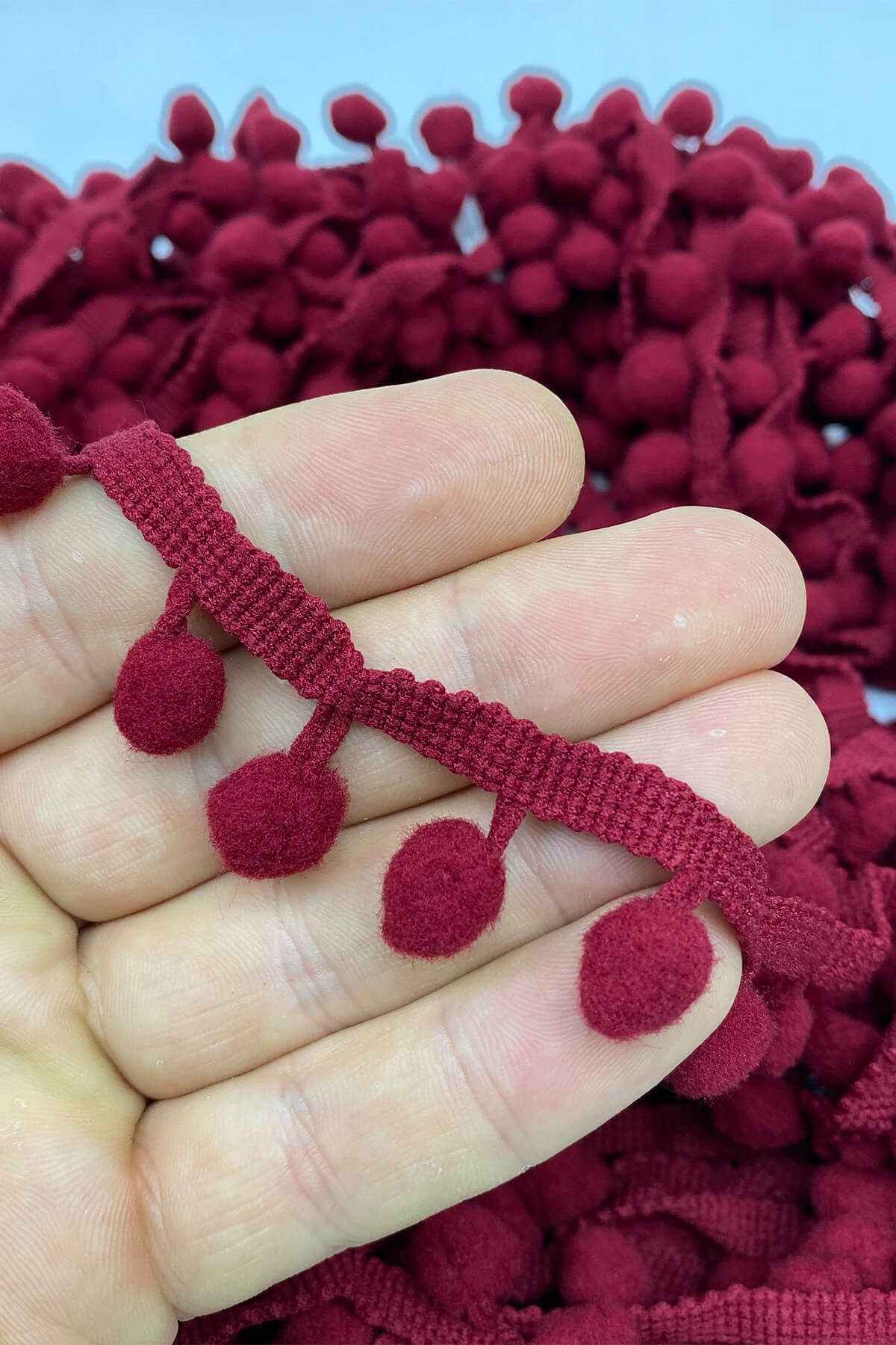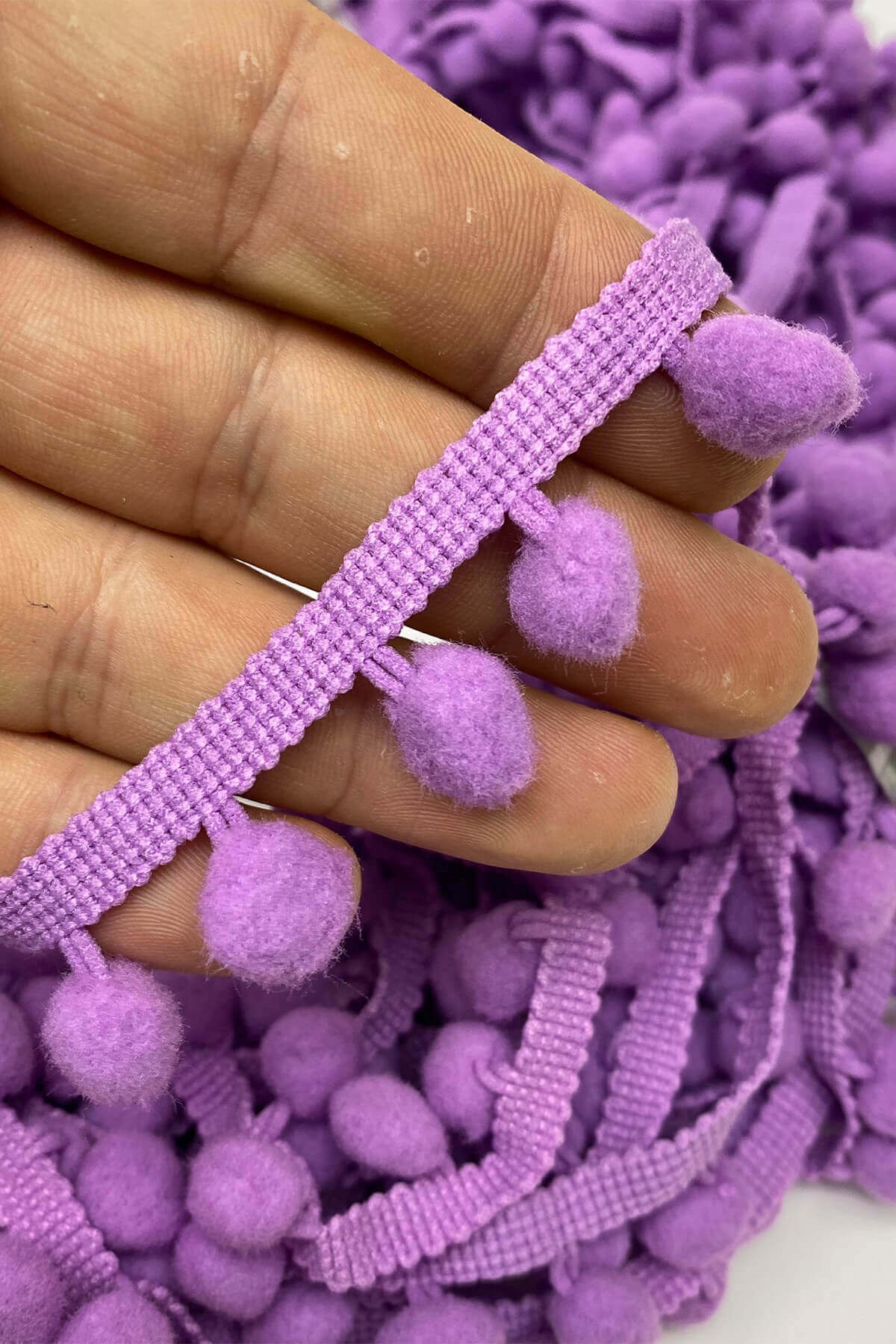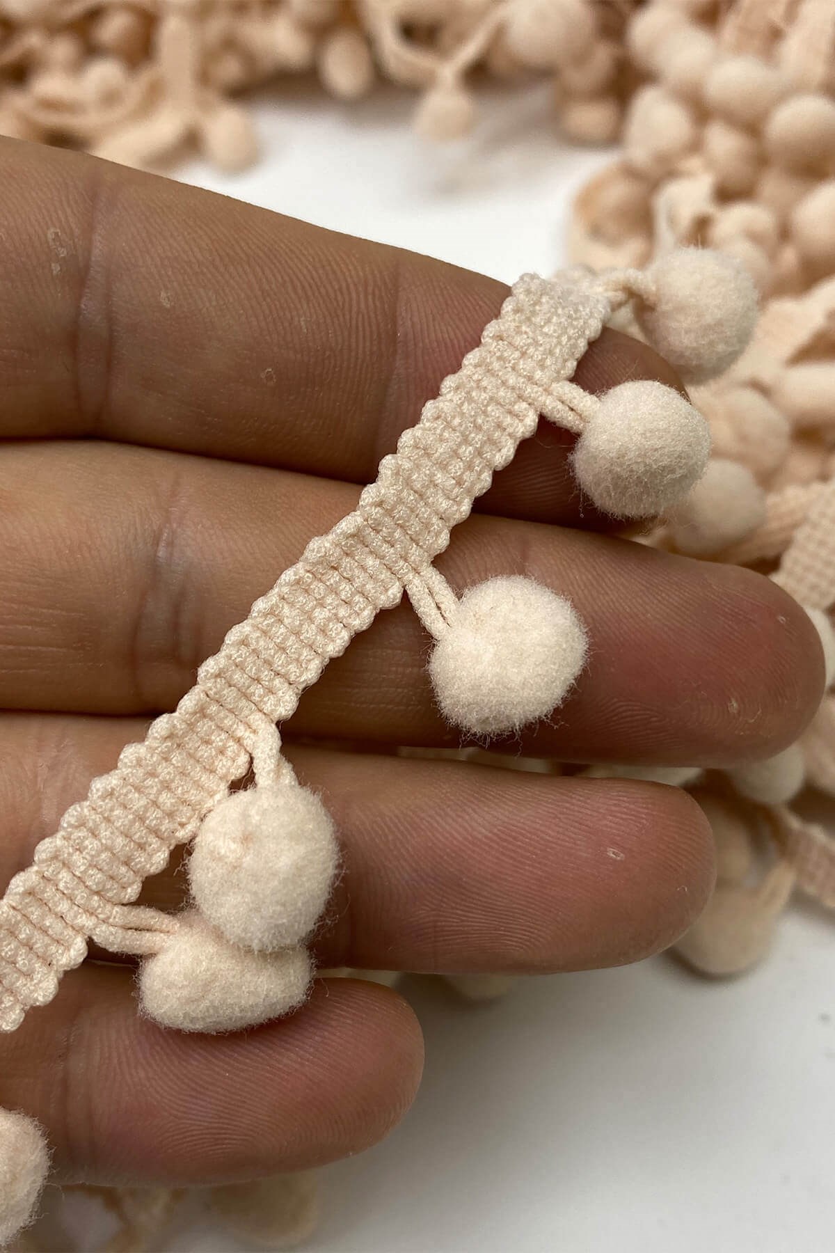 Pompom Ribbon 20 mt عبارة عن كرات من الكريات الشريطية يمكنك استخدامها بكل سرور في ديكورات المنسوجات المنزلية وجميع أعمال الحياكة وديكورات الهوايات المختلفة وزخارف الملابس والإكسسوارات.