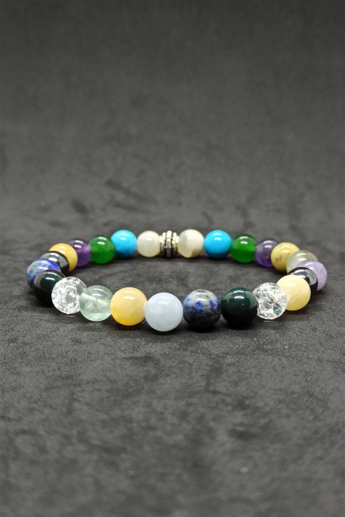 Balık Burcu Doğal Taş Erkek Bileklik Bu Üründe Kullanılan Taşlar Ametist-Aytaşı-Turkuaz Yeşim-Opal-Hematit Lapis Lazuli-Kantaşı Necef-Florit-Kalsit Akuamarin