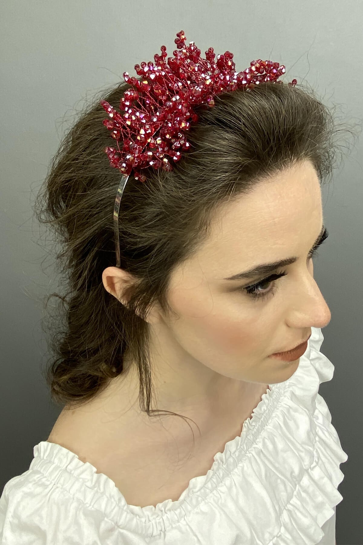 Bordo Sirius Kristal Taşlı Kına ve Gelin Tacı (HYL094T013)