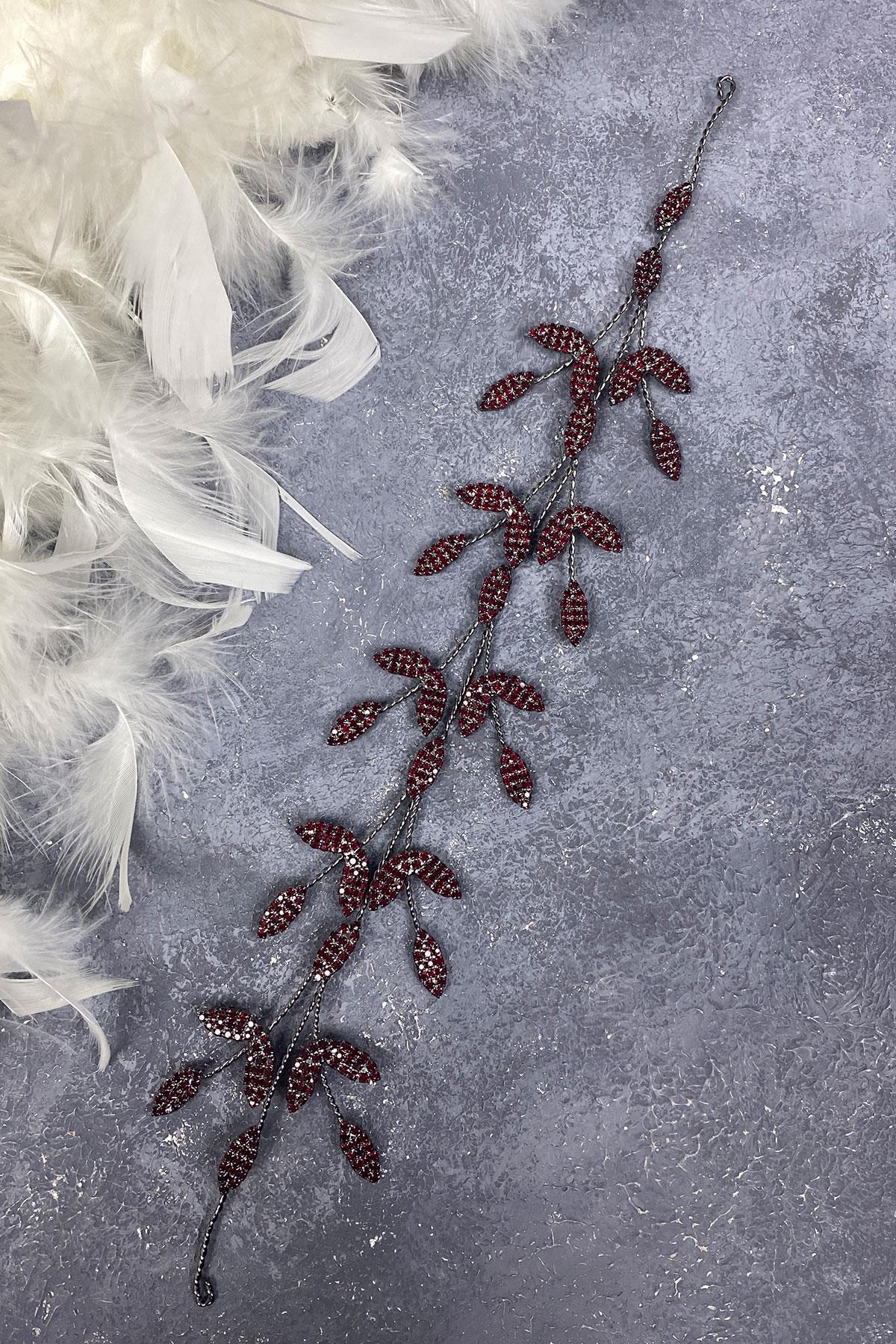 Bordo Yaprak Dallı Yena Tasarım Gelin Tacı, gelinlik ve duvak ile mükemmel bir uyum sağlayacak. Ayrıca, özel günlerde ve gecelerde de kullanabileceğiniz bir aksesuar.