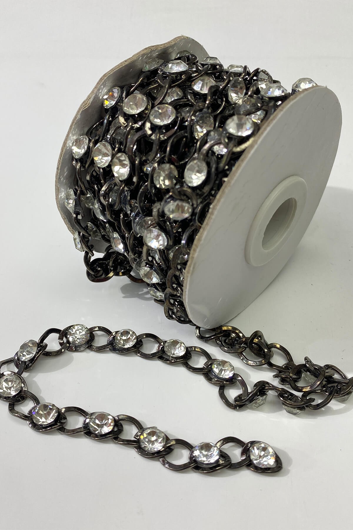 Yassı Zincirli Taşlı Metal Şerit Siyah Renk