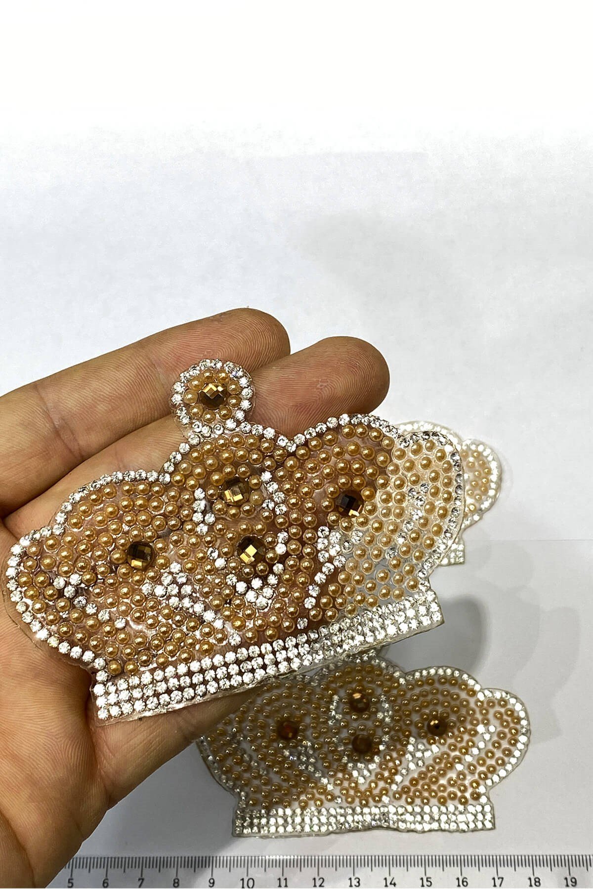 Iron-on Crown Pattern Applique Honey Color 1 Piece Sales Calculated Over 1 Piece. It can be used in many areas such as baby products decorations, textile products, bags, shoes, buckles and hobby decorations.