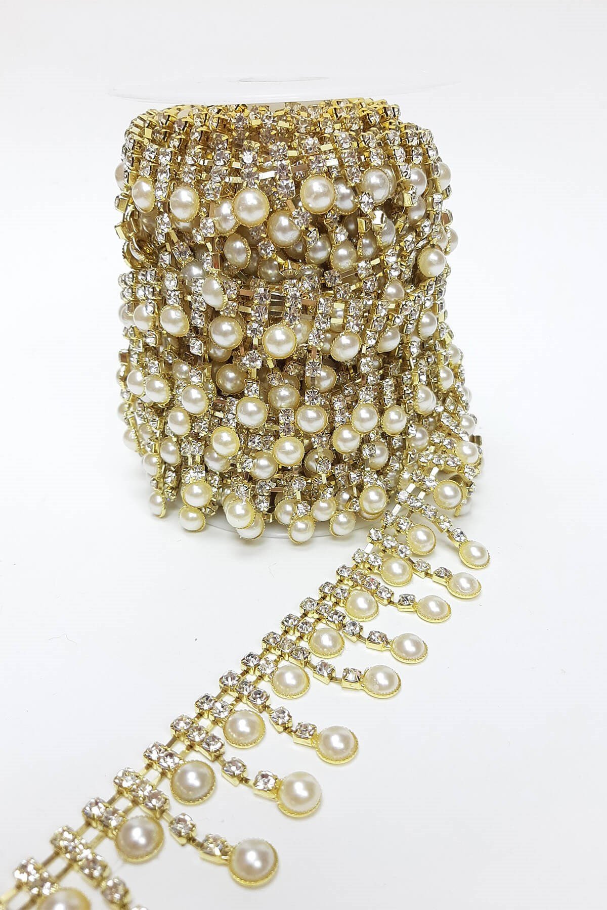 Gold Renk İncili Taşlı Püsküllü Şerit Beyoğlu Taşı 1 Metrefiyatıdır.Şerit Taşlı Aplikler Genellikle Elbise, Çanta, Ayakkabı, Ayna, Mobilya ve Birçok Ürünü Süslemek İçin Kullanılan Şeritlerdir.Toka ve Aksesuar Yapımında Da Kullanılabilir.Kullanım Alanı Oldukça Geniştir.Hayal Gücünüze Göre Birçok Üründe Tercih Edilebilirsiniz.