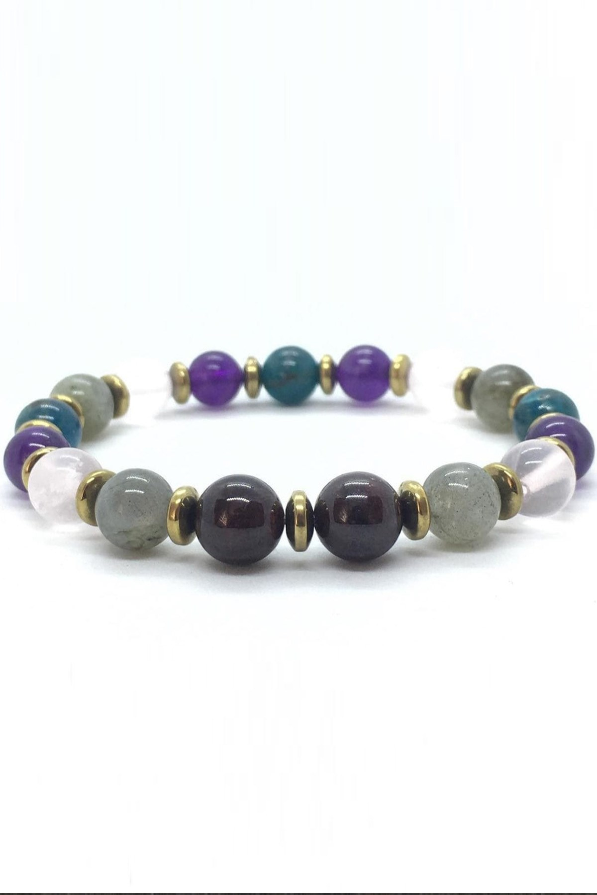 Granat (Lal)& Pembe Kuvars Taşı Bileklik Karma Bu Üründe Kullanılan taşlar 1-Granat(lal) 2-Labradorit 3-Pembe Kuvars 4-Ametist 5-Apatit 6-Hematit