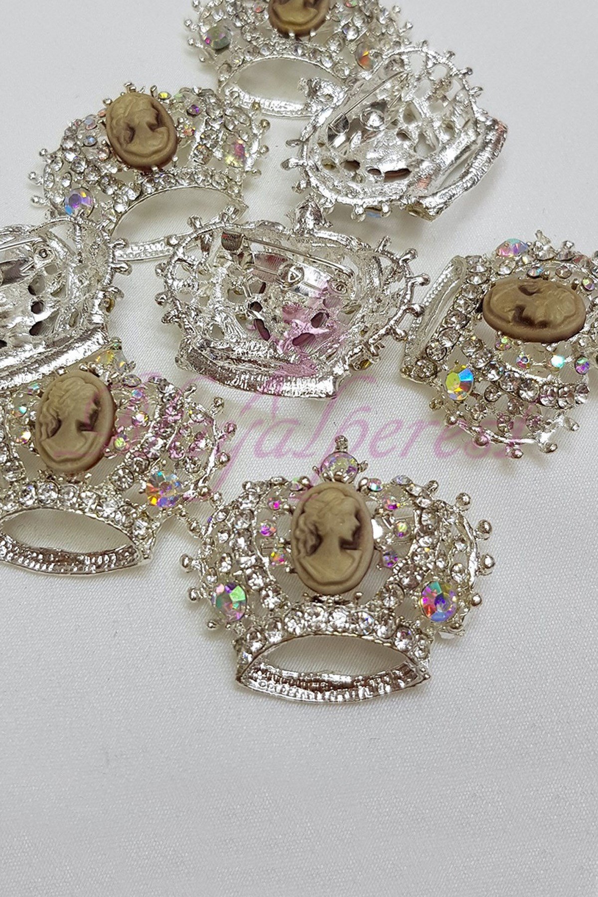 Gümüş Madame Coco Taçlı Kristal Broş (BRS-015)