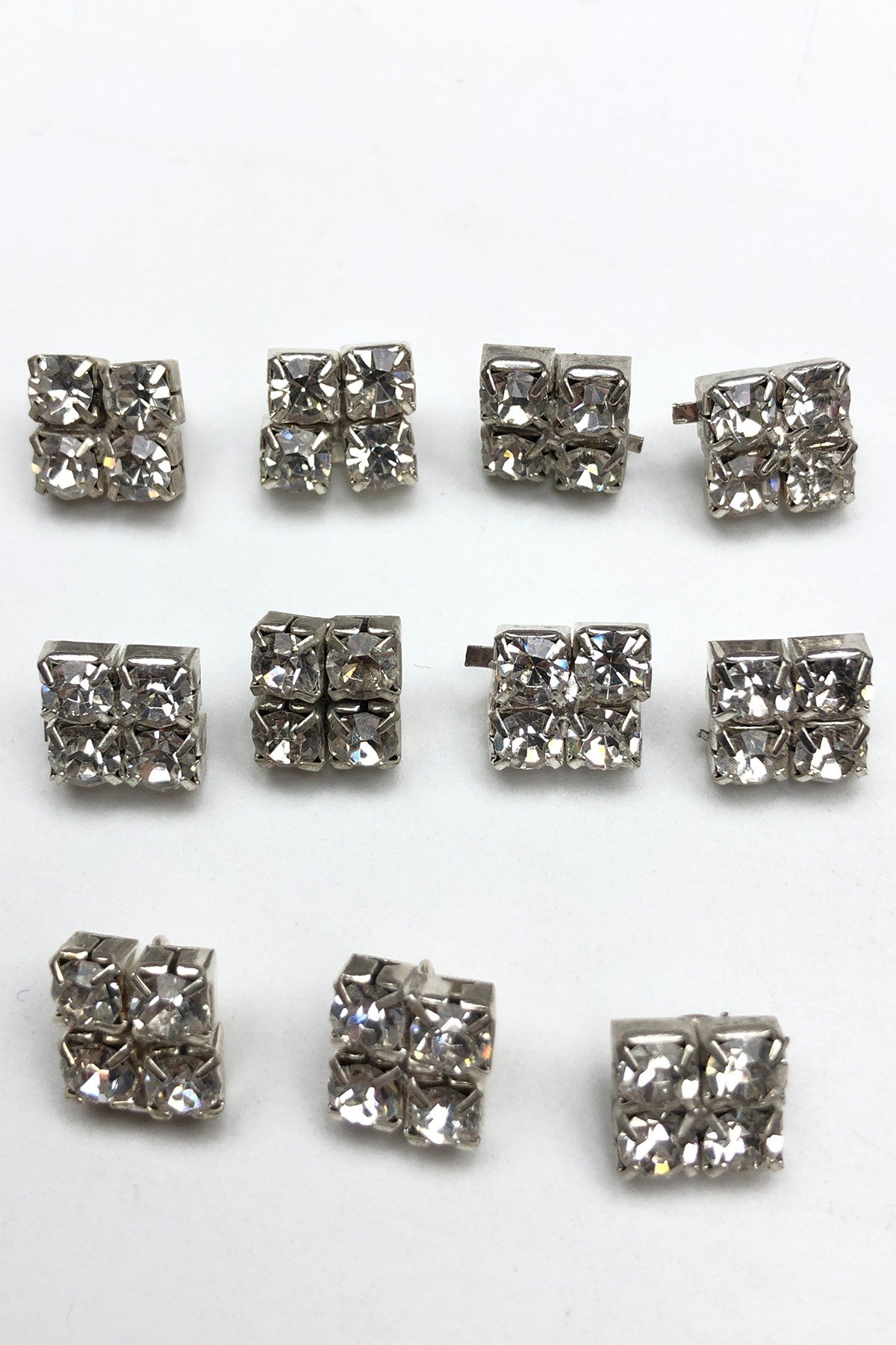 Gümüş Rengi Kare Taşlı Abiye Düğme (TD030)