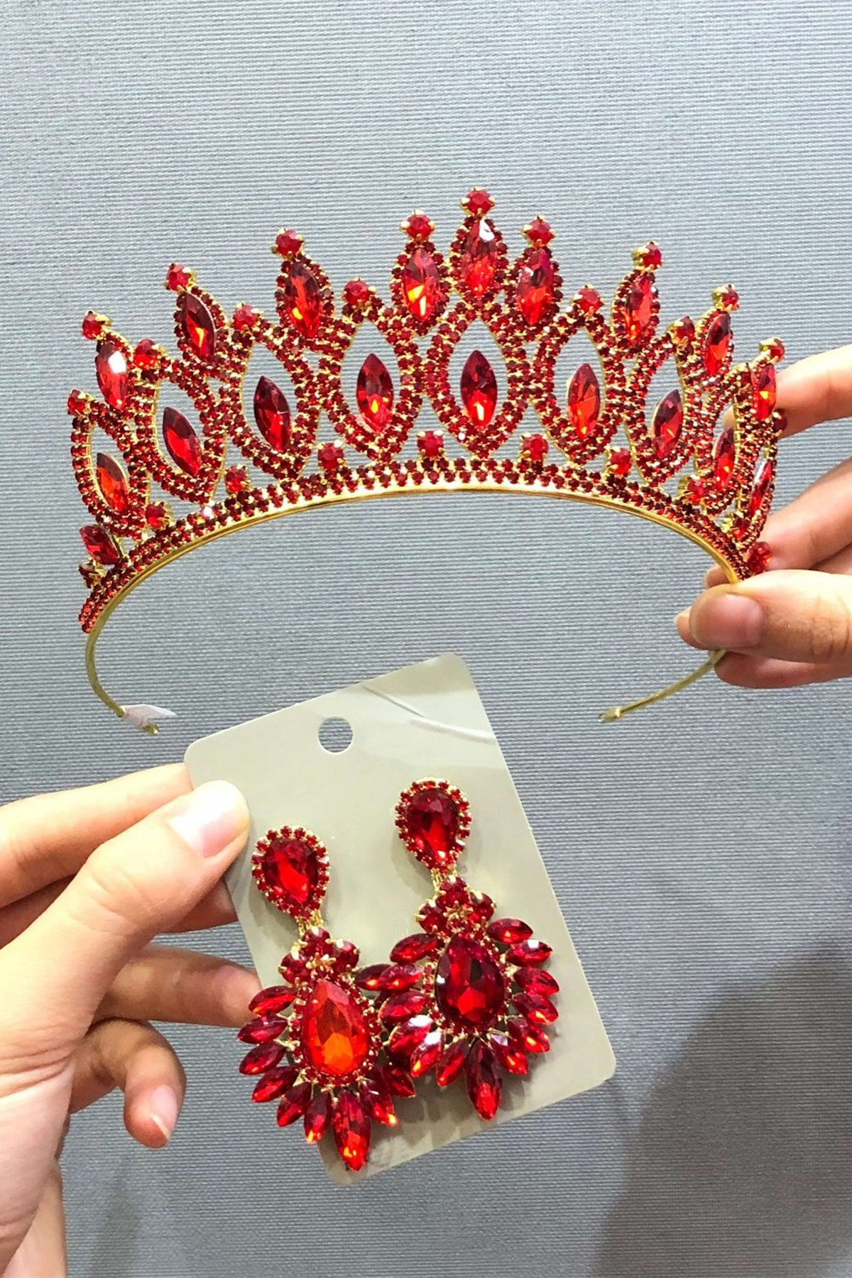 Kırmızı Renk Kına Tacı ve Küpe Seti (TAC-152)
