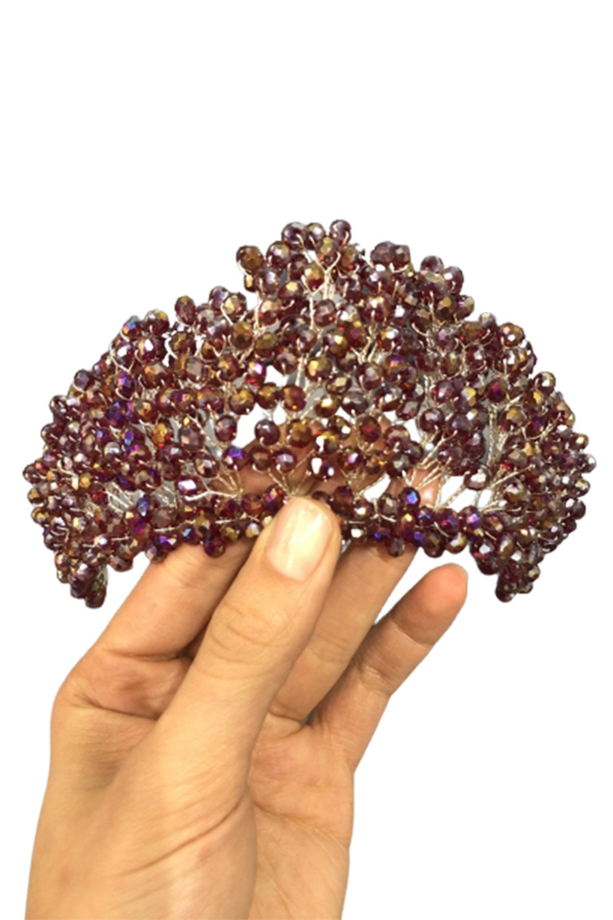 Koyu Bordo Kristal Boncuklu Gelin ve Kına Tacı (TAC2019-009)