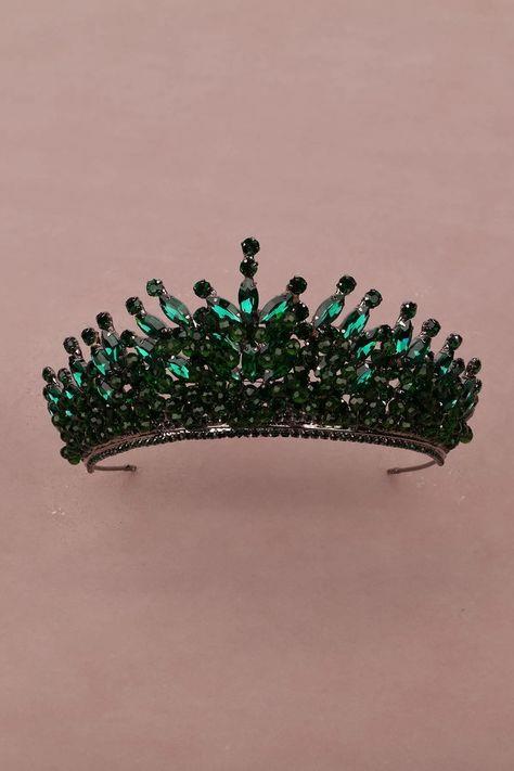 Kristal Taşlı Boncuk Süslemeli Gelin Kına düğün Tacı  Yeşil