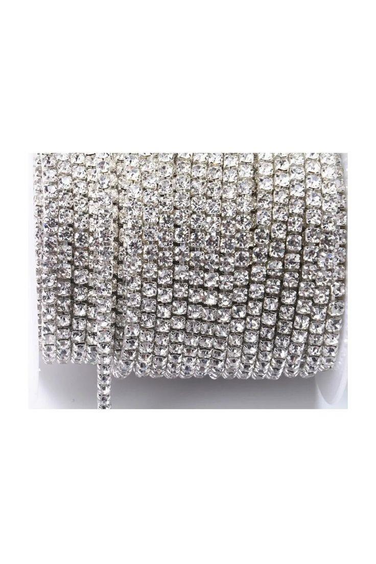Kristal Taşlı Metal Yuvalı Şerit 3,2 mm Gümüş Süsleme Malzemesi