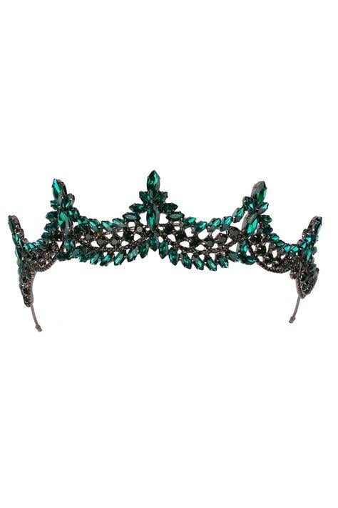 Kristal Taşlı Parlak Gelin Prenses Tacı Kına Gecesi için Kraliçe Kostüm Tacı Yeşil (SFAGHLKLK4352100)