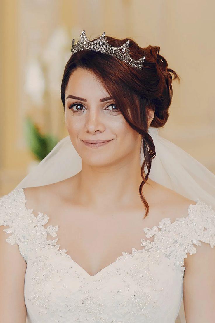 Kristal Taşlı Parlak Gelin Prenses Tacı Kına Gecesi için Kraliçe Tacı Gelin Düğün Tacı Gümüş