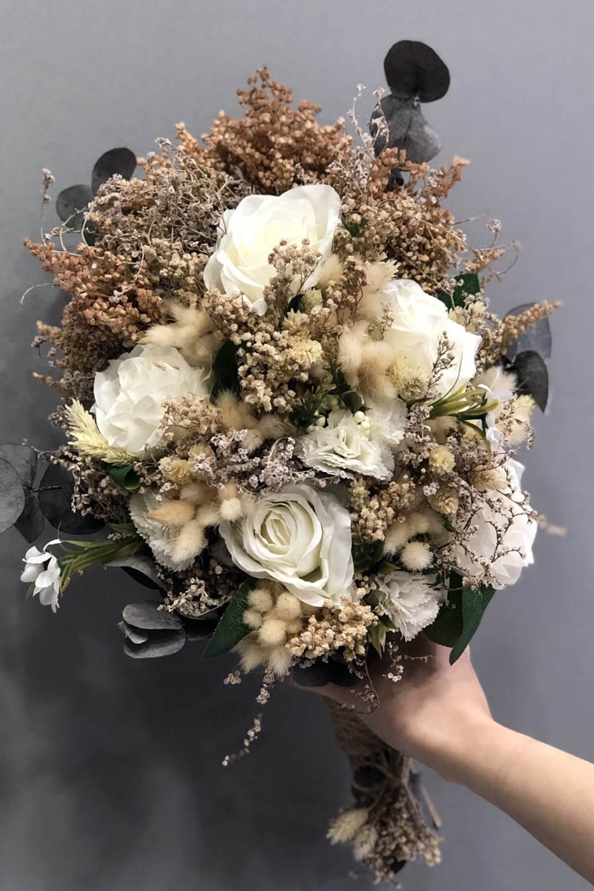 Kurutulmuş Krem Çiçekli Gelin Çiçeği, hayalperestboncuk.com.tr'de gelin adaylarının beğenisine sunulmaktadır. Eğer zarif ve doğal bir görünüm arıyorsanız, bu çiçek sizin için ideal olabilir. Kurutulmuş çiçeklerin özgün yapısı ve krem tonlarındaki çiçeklerin doğallığıyla, düğününüzde unutulmaz bir etki yaratabilirsiniz. Bu gelin çiçeği, sadelikten ve doğallıktan vazgeçmeyen gelinler için mükemmel bir seçenektir.