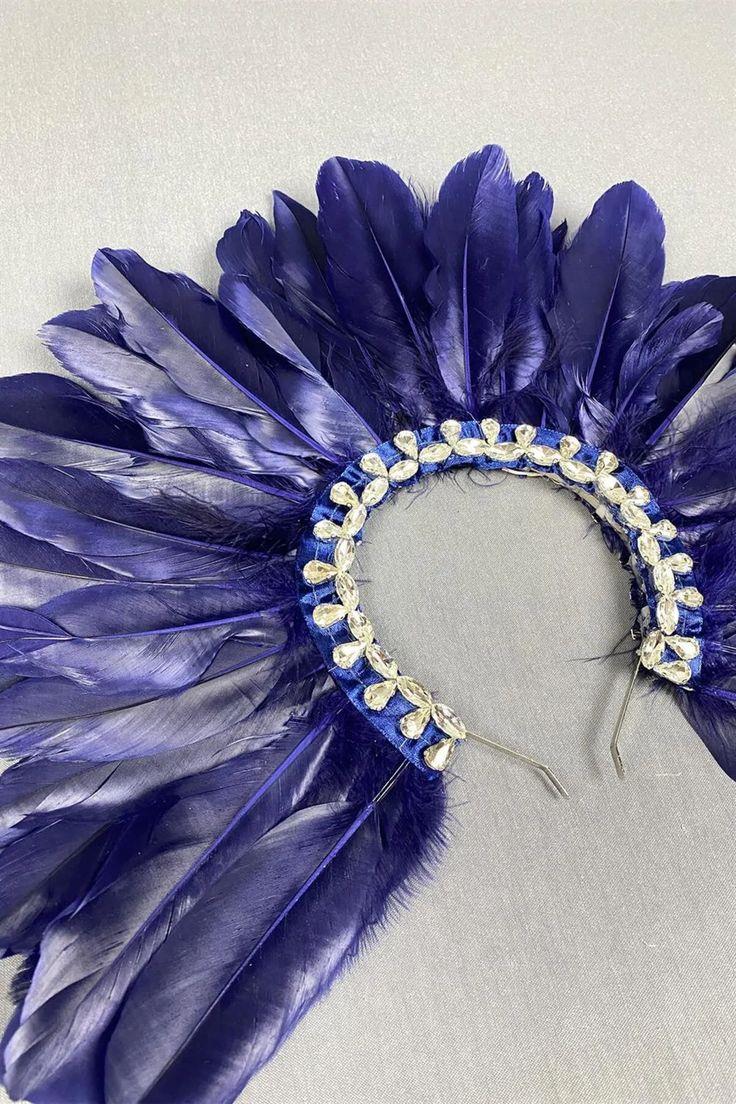 Lacivert Dali Tüylü Taşlı Gelin Kına Tacı Aksesuar (TXCB57F6A990592)