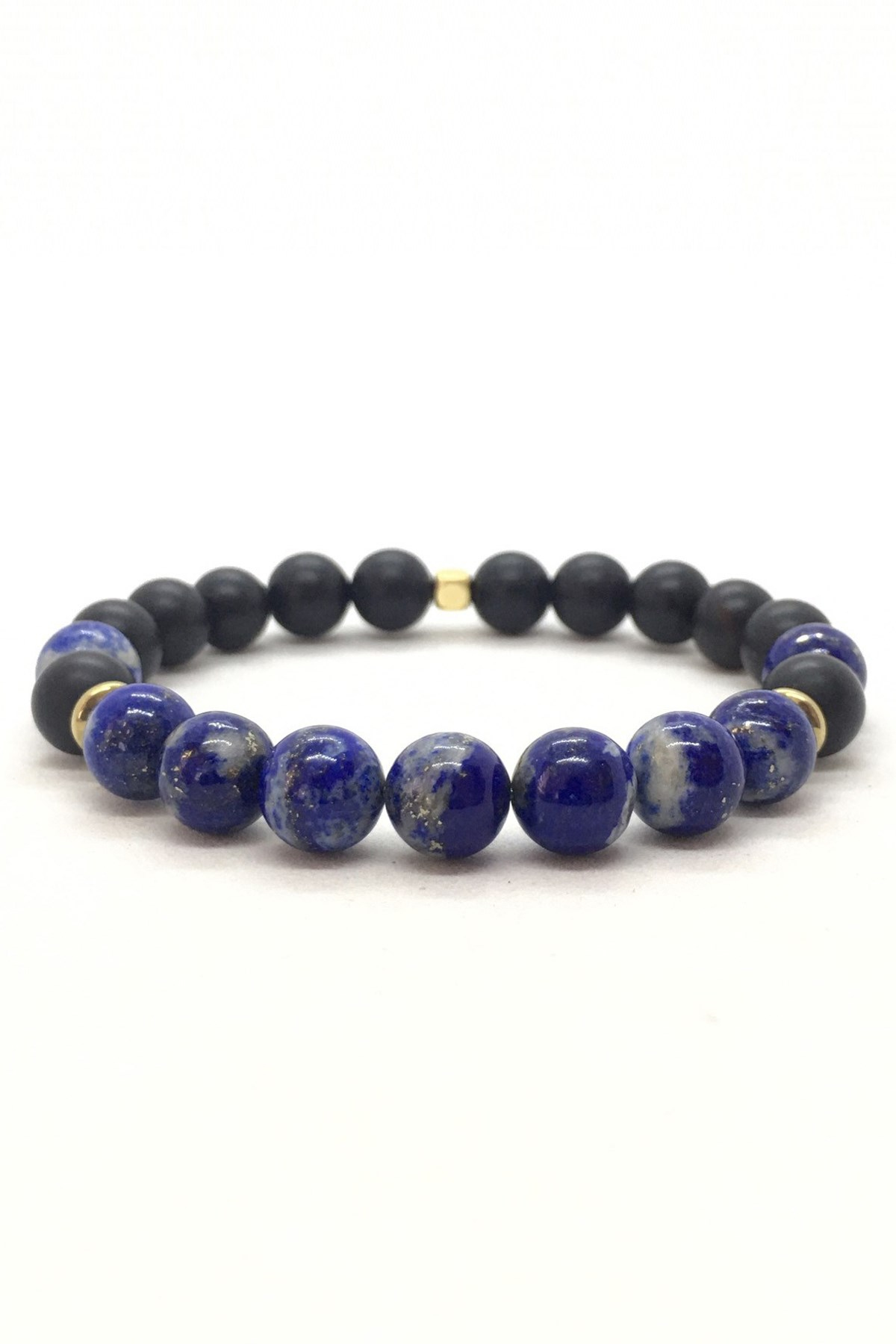 Lapis Lazuli & Oniks Doğal Taş Bayan Bileklik (8 Mm)