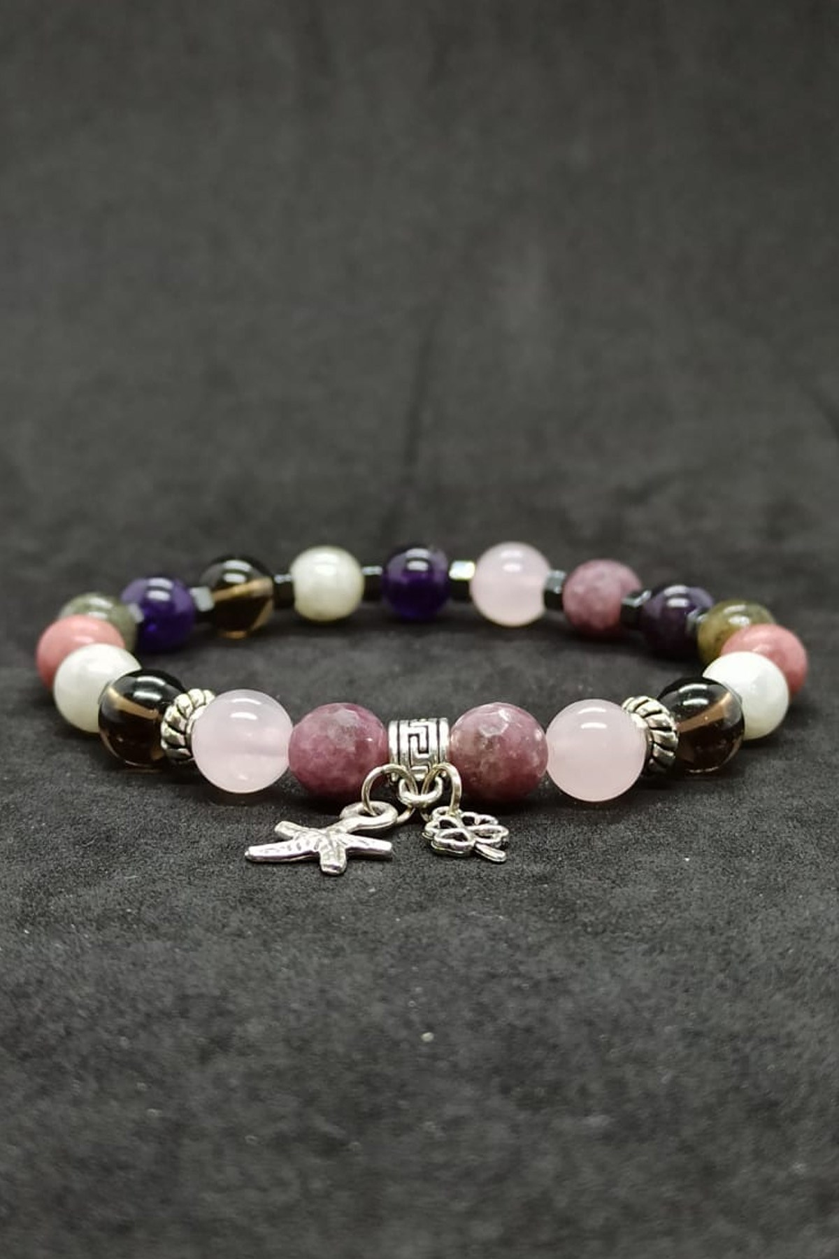 Lepidolit Pembe Kuvars Taşı Bileklik Bu Üründe Kullanılan Taşlar Lepidolit-Pembe Kuvars-Dumanlı Kuvars Aytaşı-Rodonit-Labradorit-Ametist-Hematit
