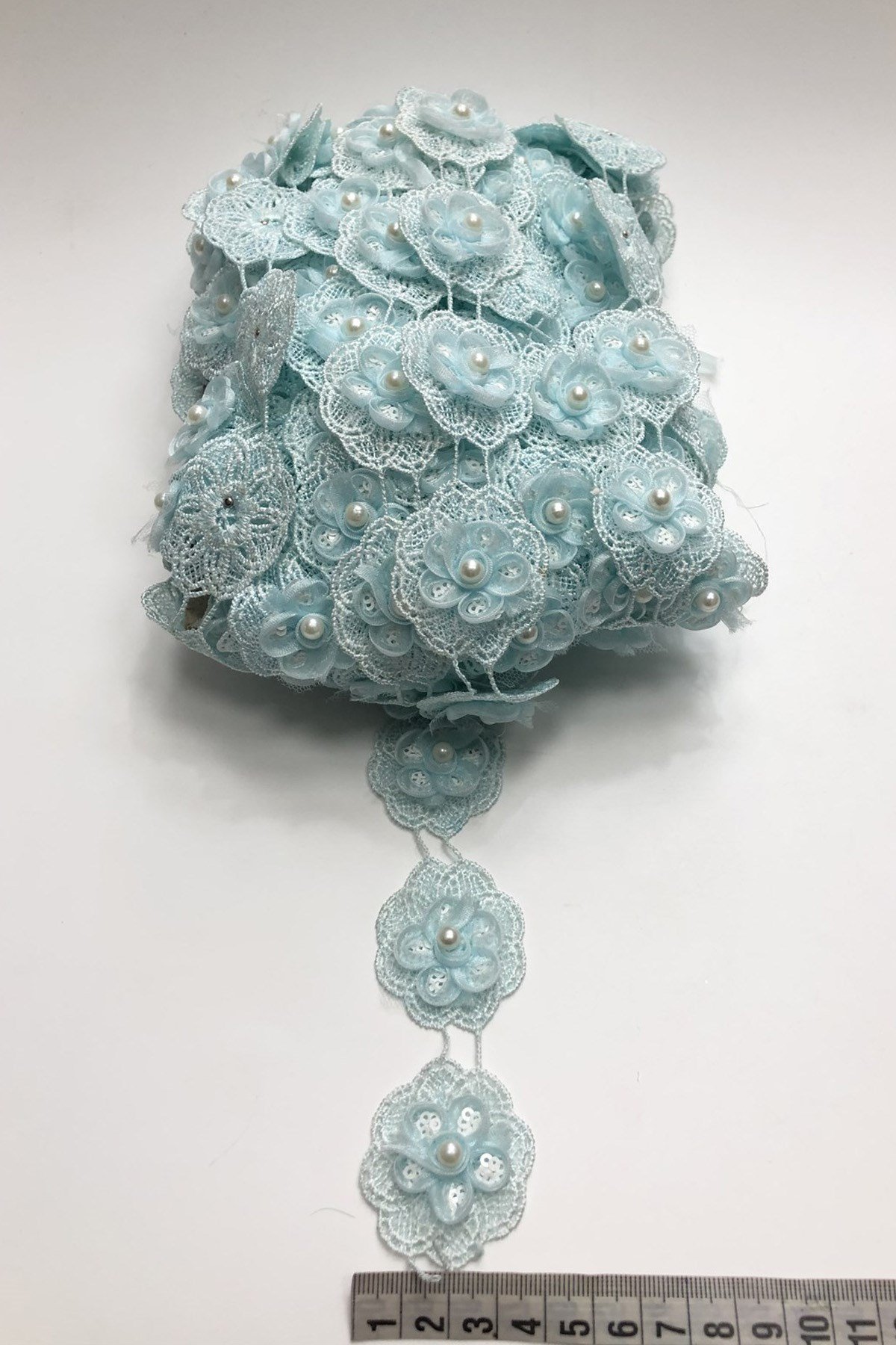 Mavi 3 Boyutlu Çiçekli Şerit (SACS-024)