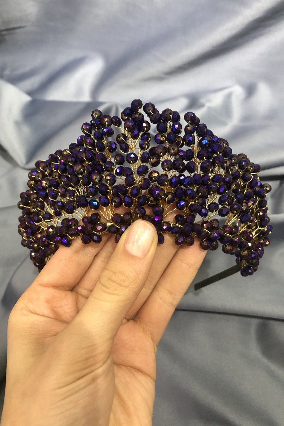 Mor Kristal Boncuklu Gelin ve Kına Tacı (TAC2019-013)