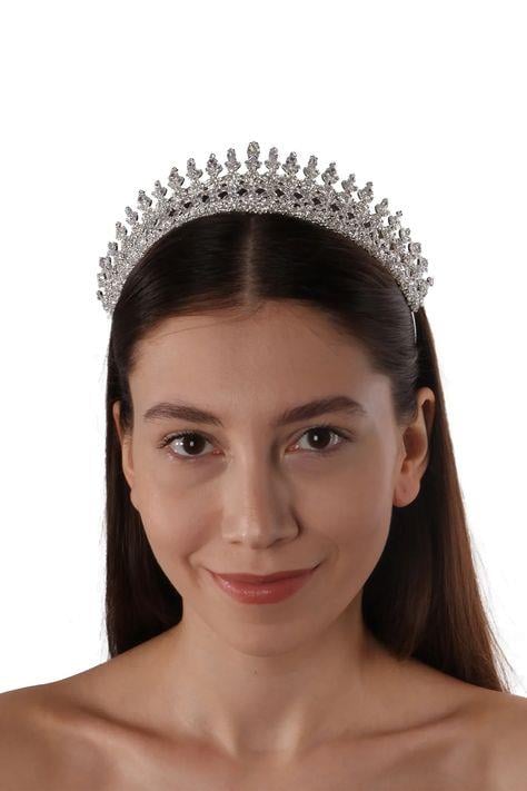 Parlak Zirkon Taşlı Özel Tasarım Gelin Düğün Kına Tacı Prenses Gelin Zirkon Tacı (o3442rkn7)