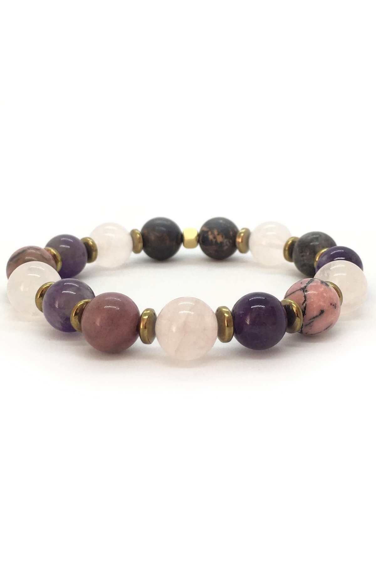 Pembe Kuvars & Ametist & Rodonit Taşı Bileklik Karma