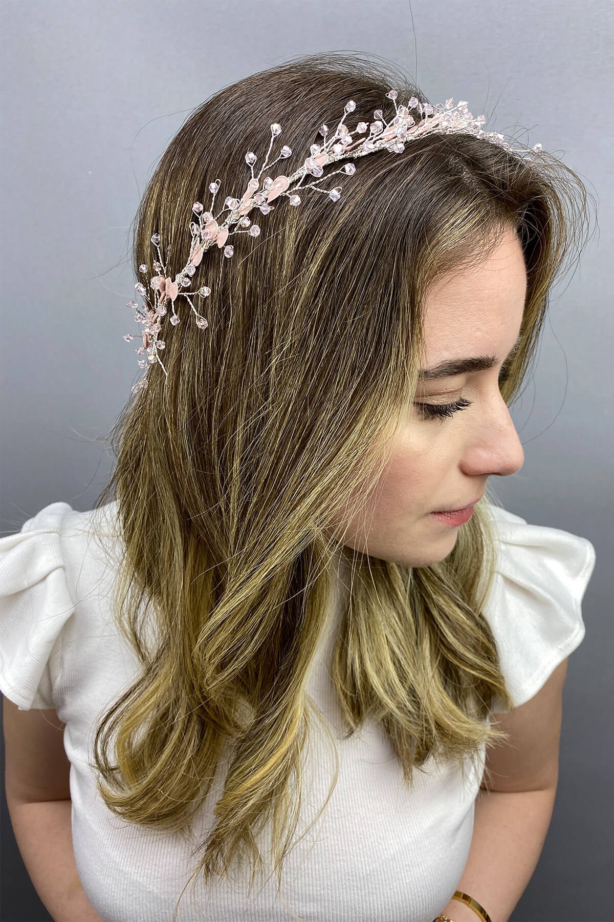 Pudra Mineli Bahar Dalı Saç Aksesuarı Gelinlerin Kınalarda Bindalı ve Kına Kıyafetlerinin Üzerine Aksesuar Olarak En Çok Tercih Ettigi Kullanılan El İşçiliği İle Yapılan Kına Tacı Modeli. Göz Alıcı ve Zarif Bir Aksesuar İsteyen Gelinlerin Tercihi Olabilecek Saç Akseauarı Gelin Kına Tacı.