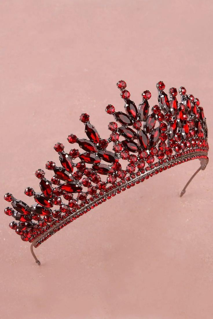 Rio Model Gelin Kına Tacı Prenses Tacı Düğüne Kristal Taşlı Taç Bordo