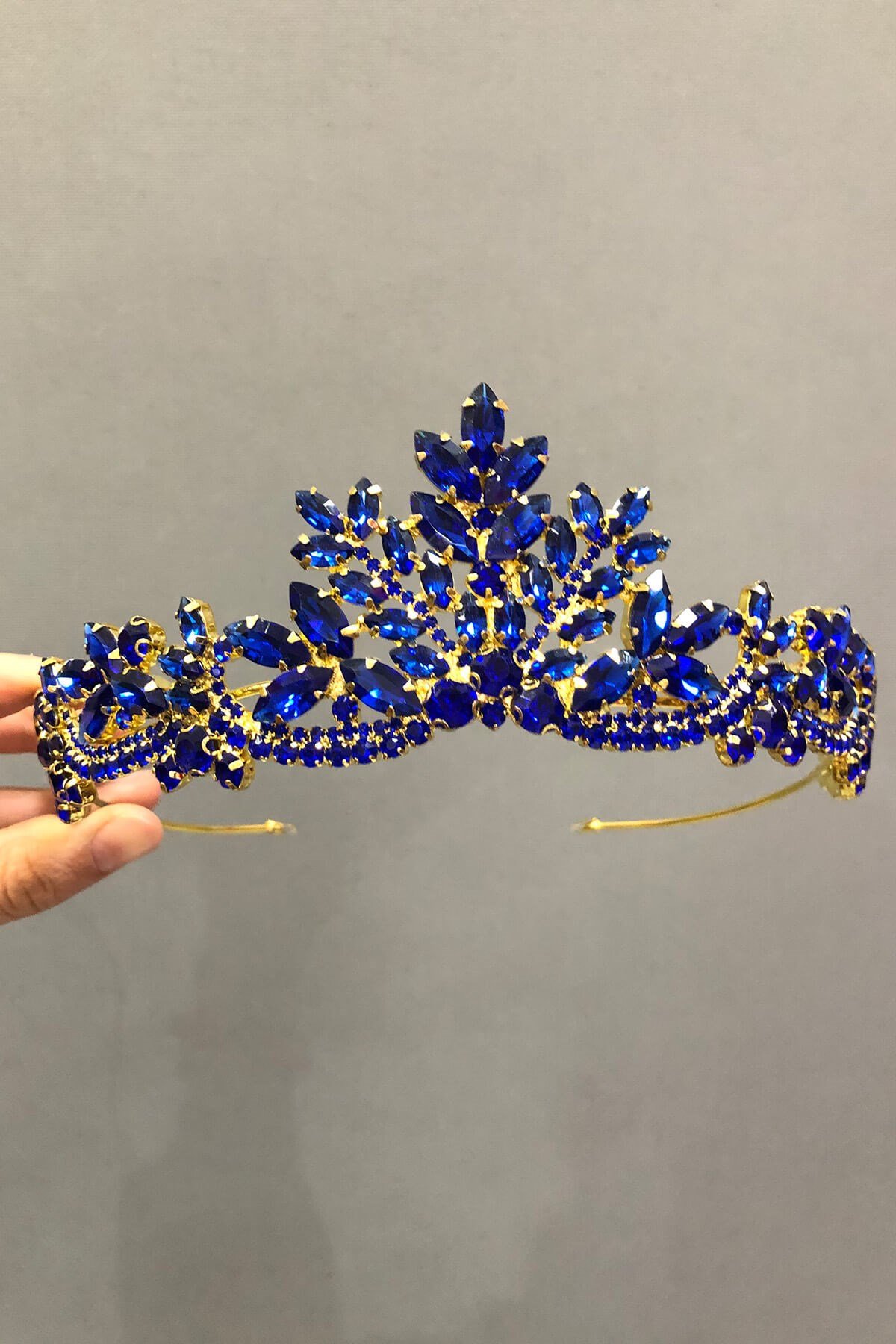 Altın Rengi İşlemeli Mavi Gelin Tacı