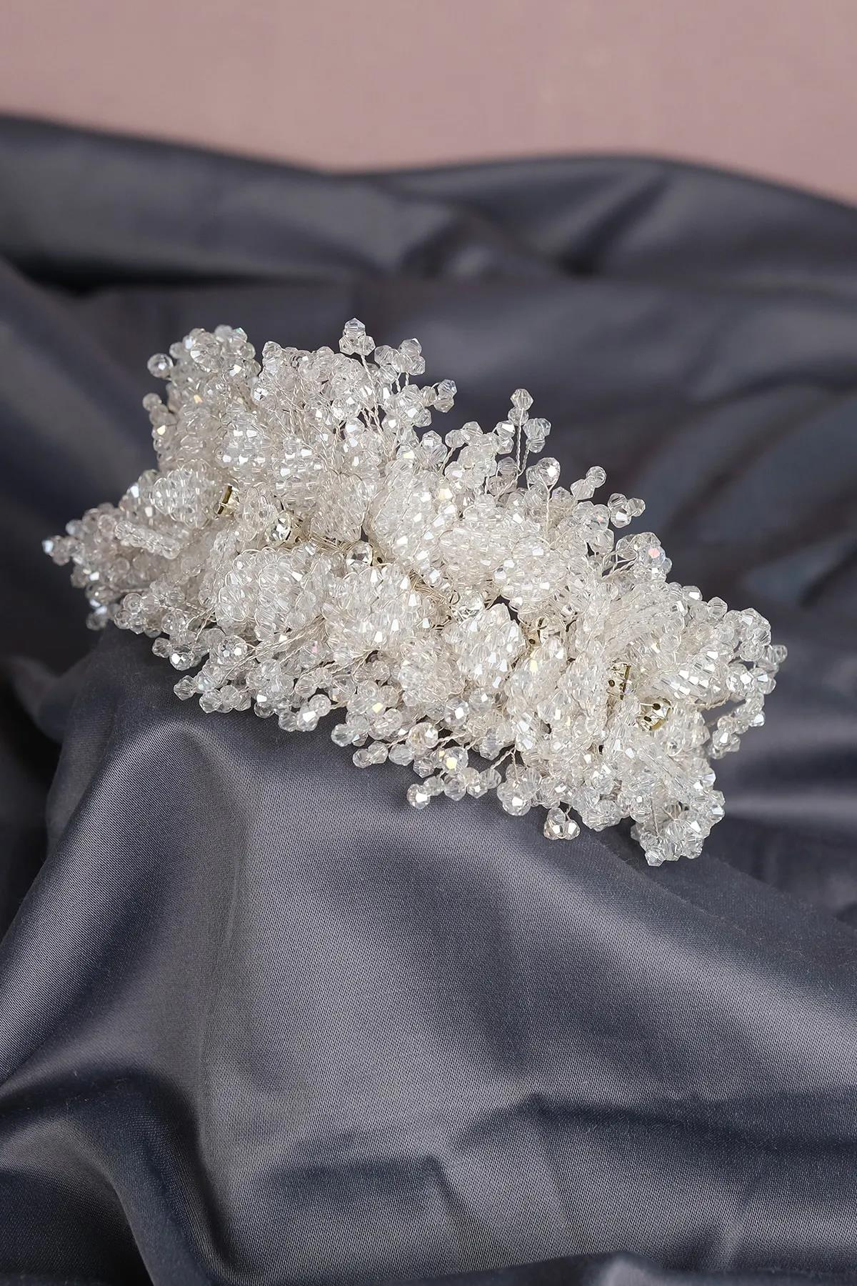 Şeffaf Beyaz Bella Çiçek Motif Boncuklu Gelin Kına Tacı