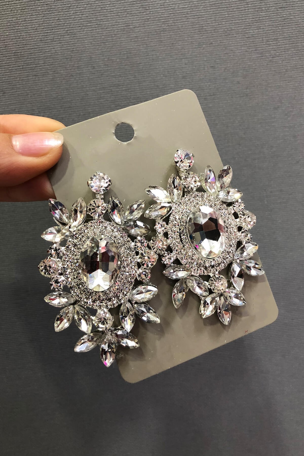 Şeffaf Kristal Taşlı Yuvarlak İşlemeli Küpe