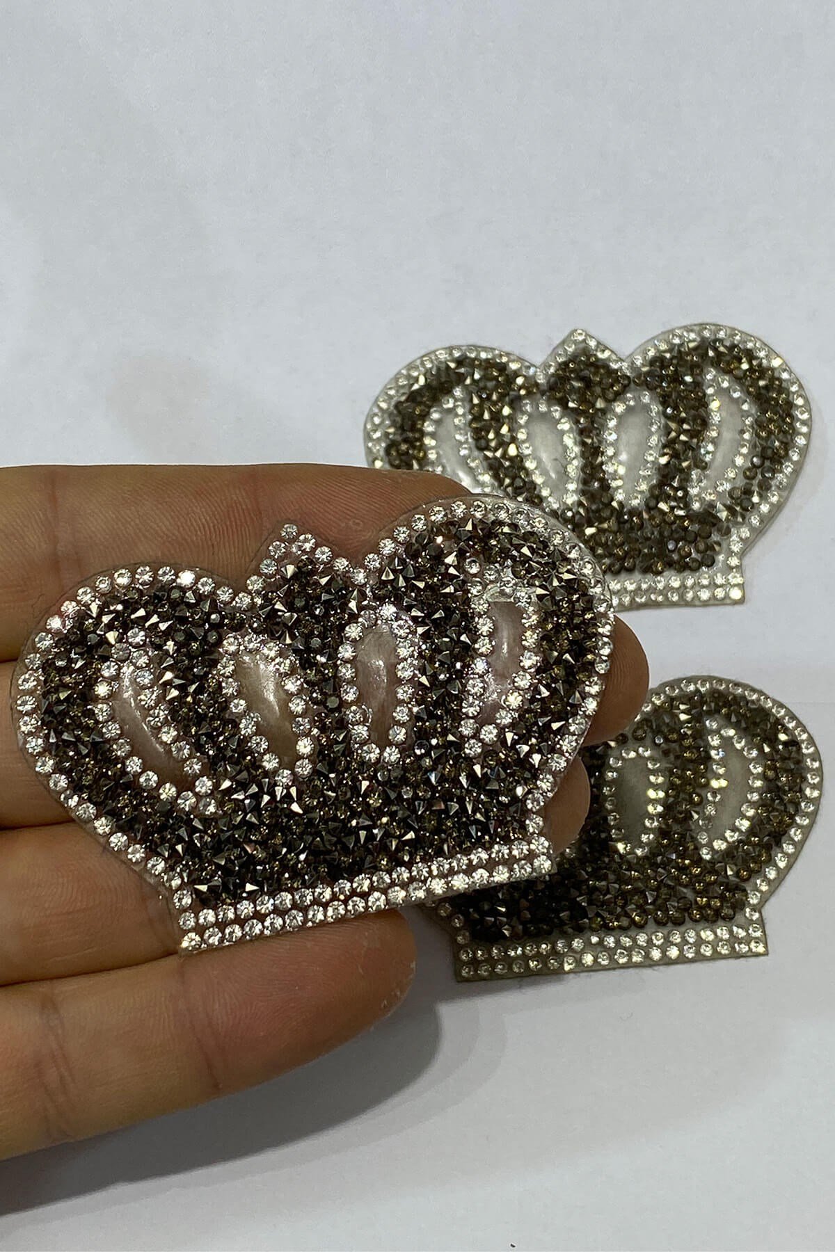 Ütüyle Yapışan Taç Desenli Aplik Füme 1 Adet