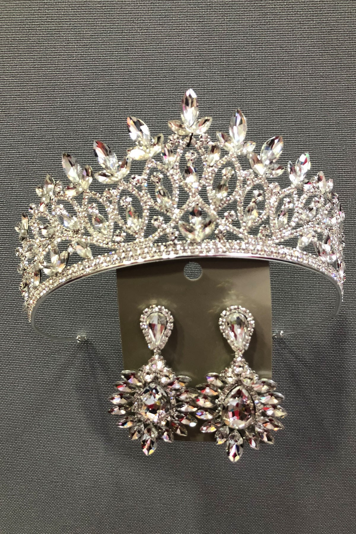 verda Gümüş Rengi Gelin.Kına Tacı ve Küpe Takımı Kristal Cam Taşlı Saç Aksesuarı.