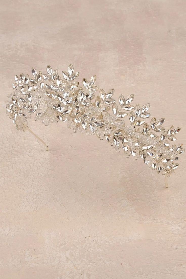 Yaprak Desenli Zarif Gelin Kostüm Tacı Kına Gecesi Tacı Gümüş