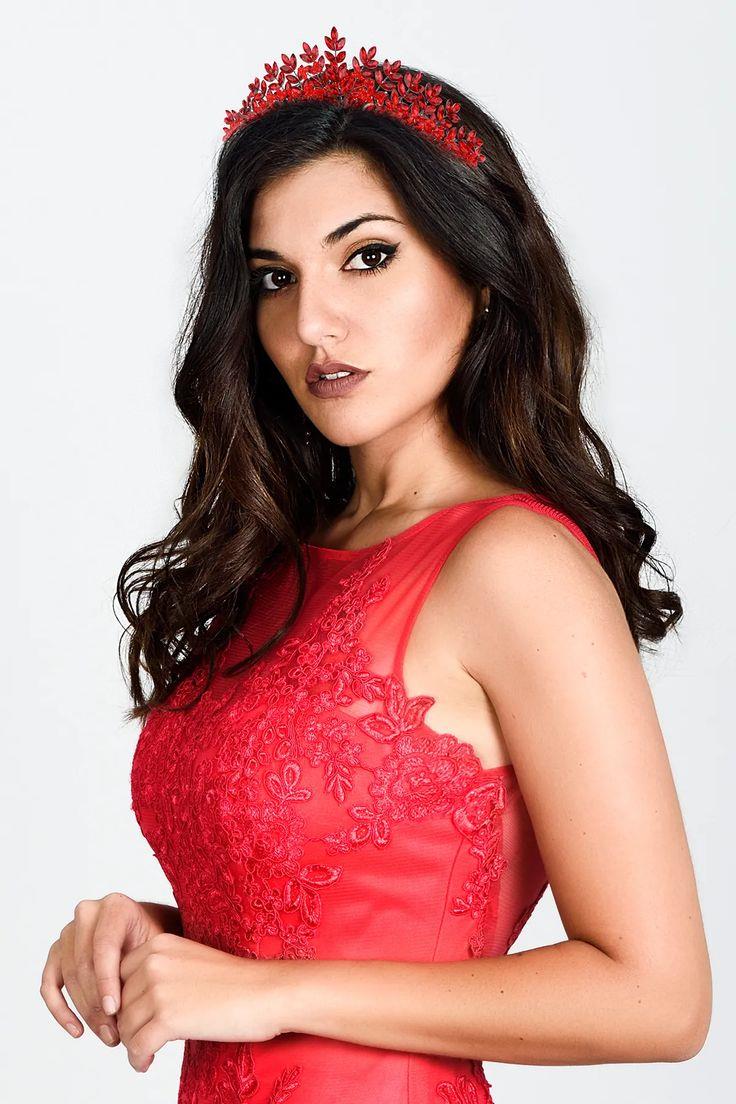 Yaprak Desenli Zarif Gelin Kostüm Tacı Kına Gecesi Tacı Kırmızı (TCA23A1)