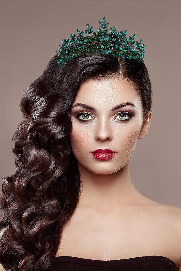 Yaprak Desenli Zarif Gelin Kostüm Tacı Kına Gecesi Tacı Yeşil
