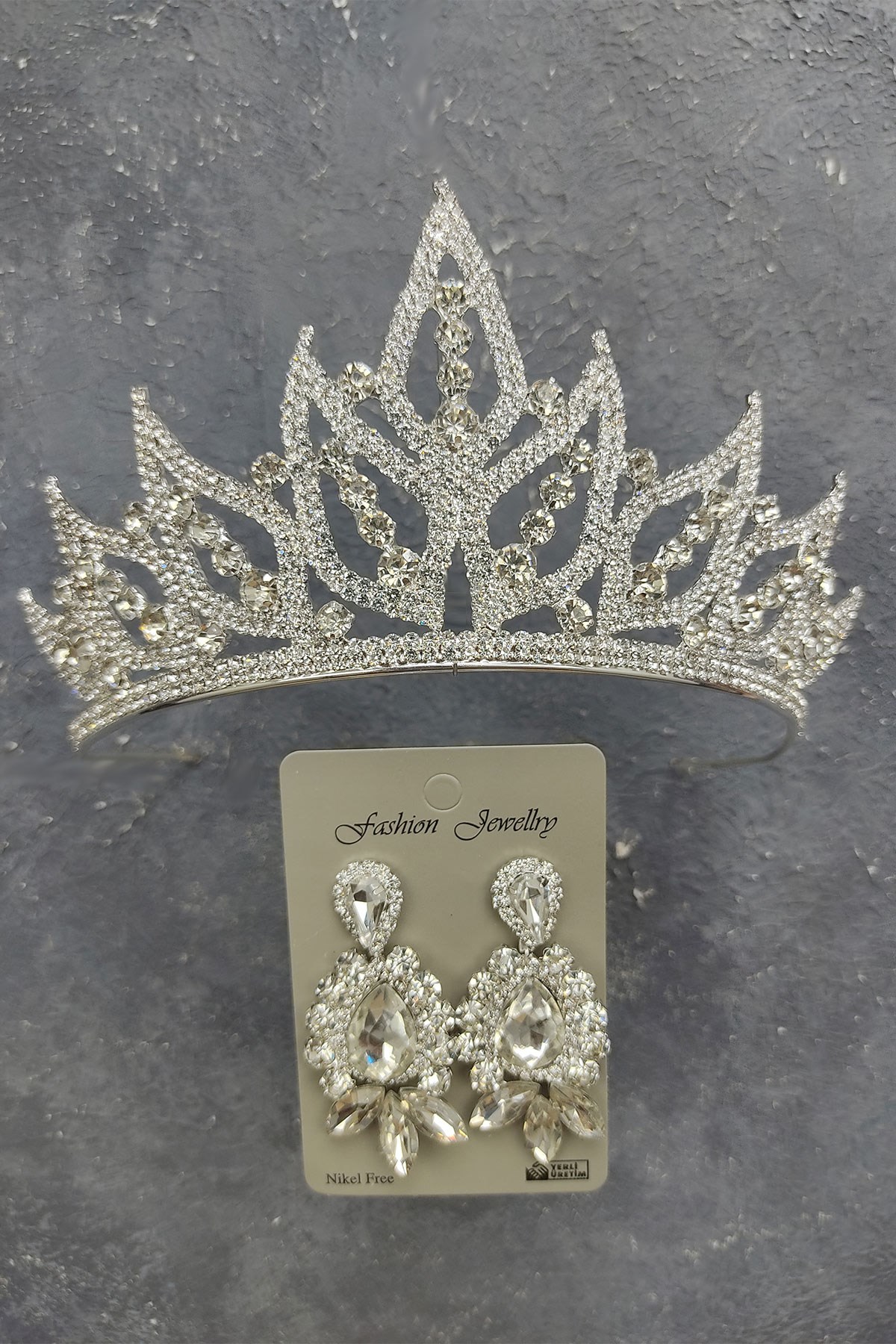 Yaprak Model Gelin Tacı ve Mekik Damla Taşlı Küpe seti ile: