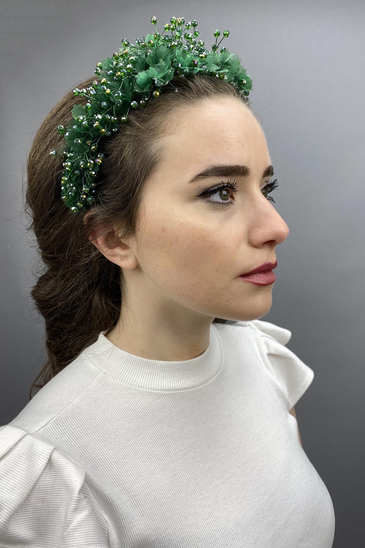 Yeşil Agena Kristal Taşlı Kına ve Gelin Tacı