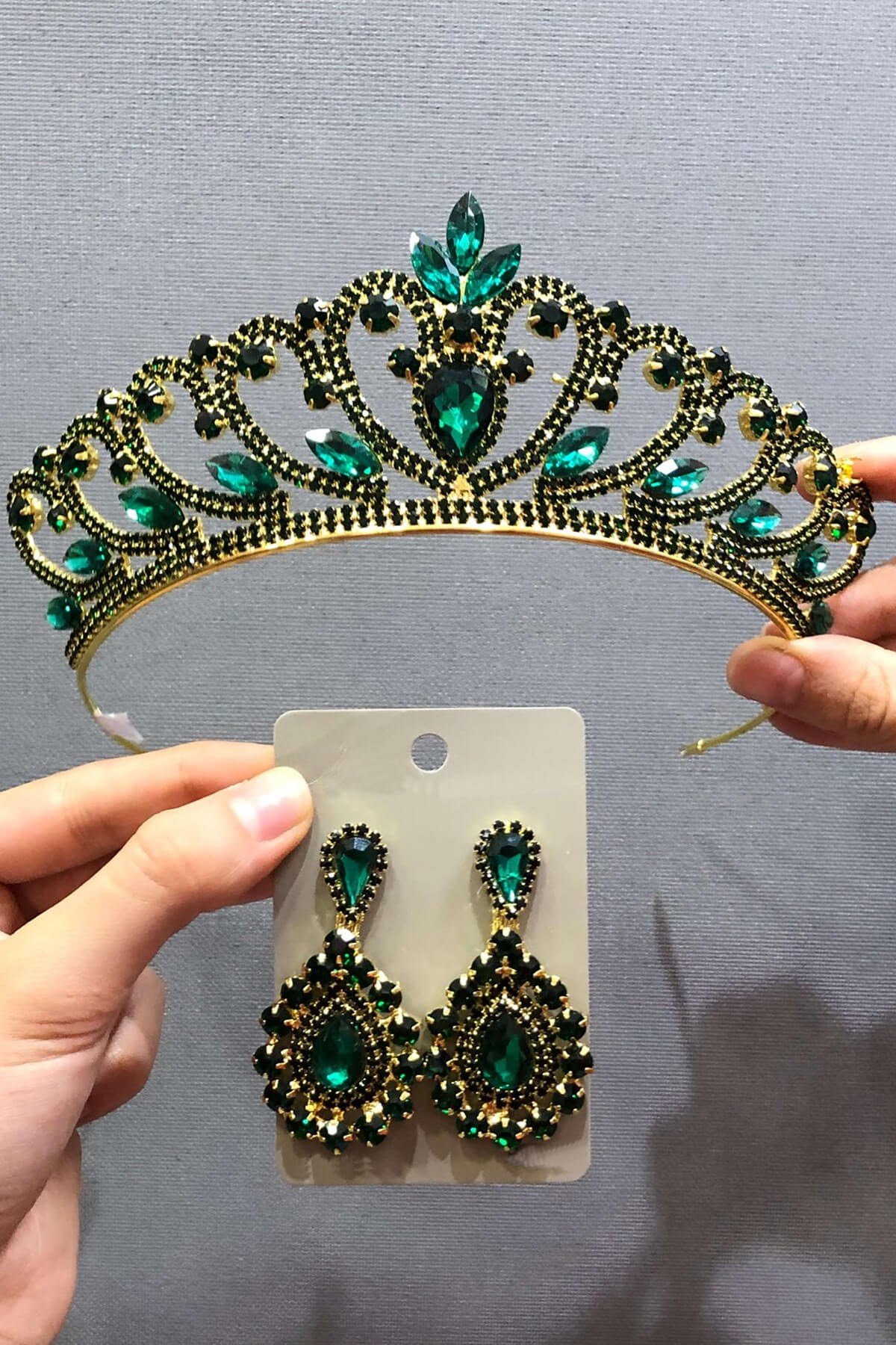 Yeşil Gelin Kına Tacı ve Küpe Takım (TAC-416)