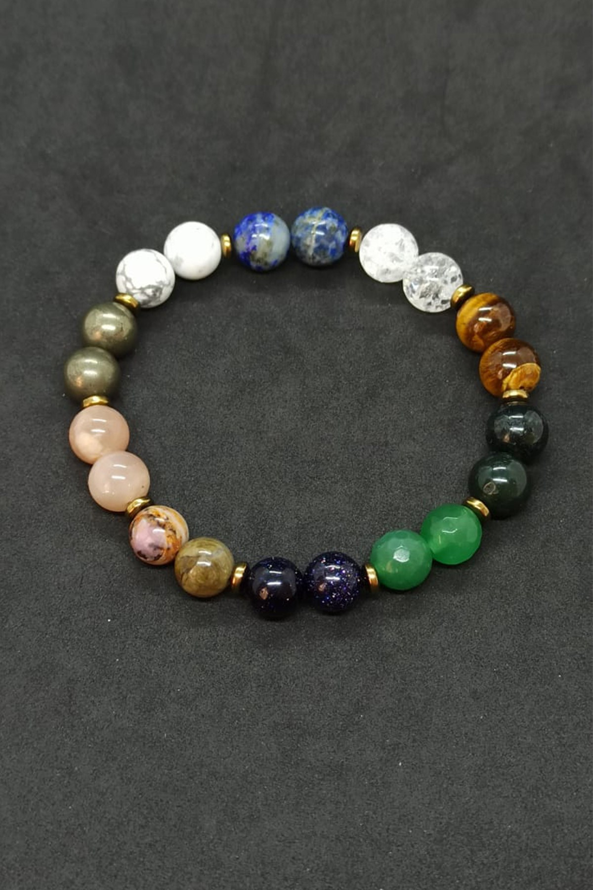 Yıldız ve Aventurin Taşı Bileklik Bu Üründe Kullanılan Taşlar Yıldız Taşı-Aventurin-Kantaşı Kaplangözü-Necef-Lapis Lazuli Havlit-Pirit-Güneştaşı-Turmalin Hematit