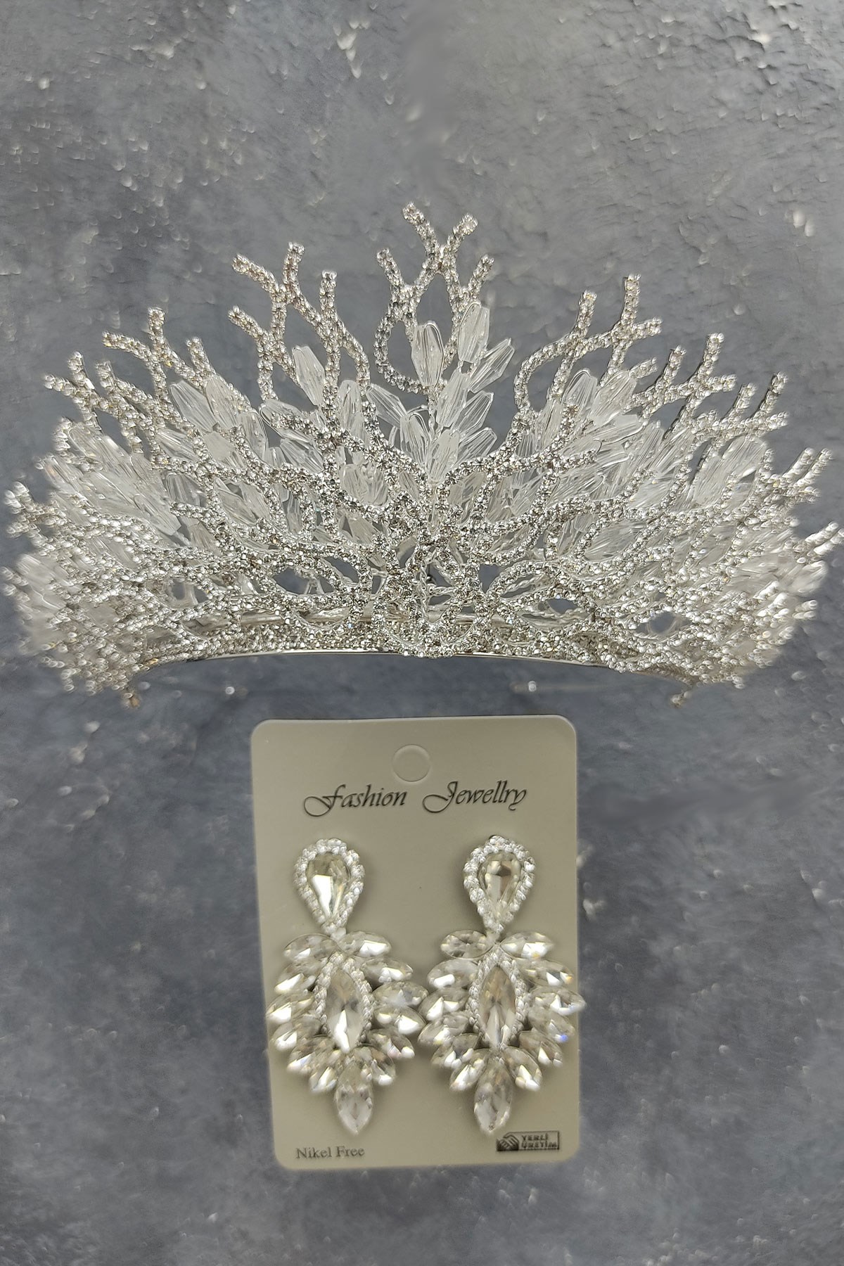 Zehra Model Gelin Tacı ve Damla Taşlı Küpe, düğün gününüzde göz kamaştırmanızı sağlayacak mükemmel bir aksesuar seti. Zarif ve şık tasarımıyla bu set, gelinliğinize ve tarzınıza mükemmel bir uyum sağlayacak.