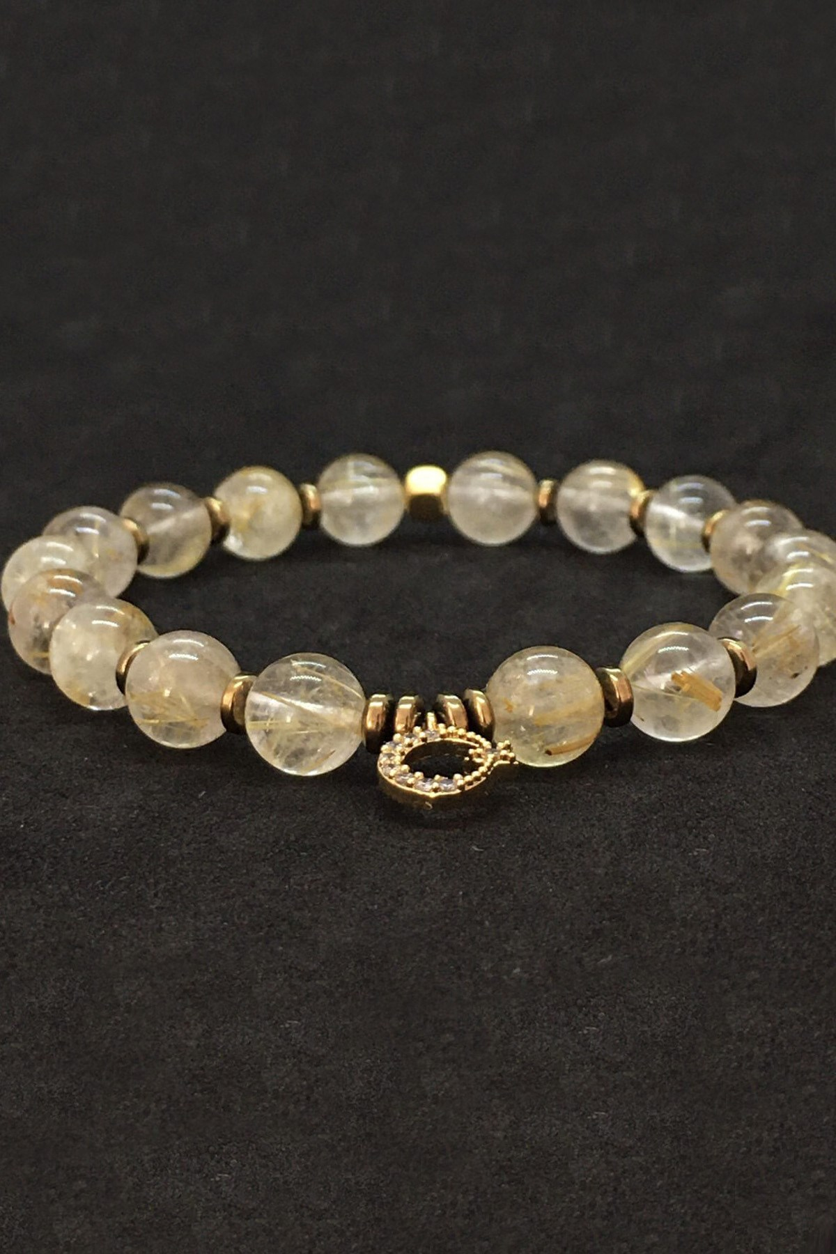 Zirkon Taşlı Altın Rutil Kuvars Doğal Taş Bayan Bileklik (8 Mm)