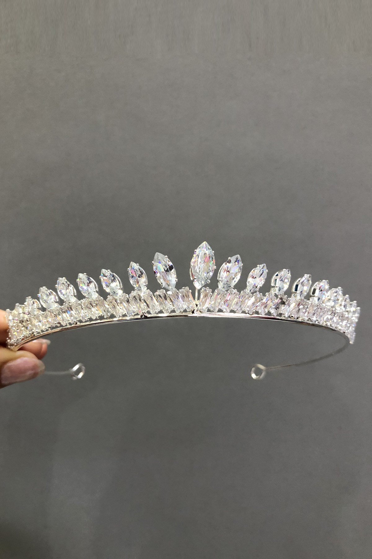 Kristal Taşlı Oval Açılı Gelin Tacı Kristal Cam Taşlı Saç Aksesuarı.