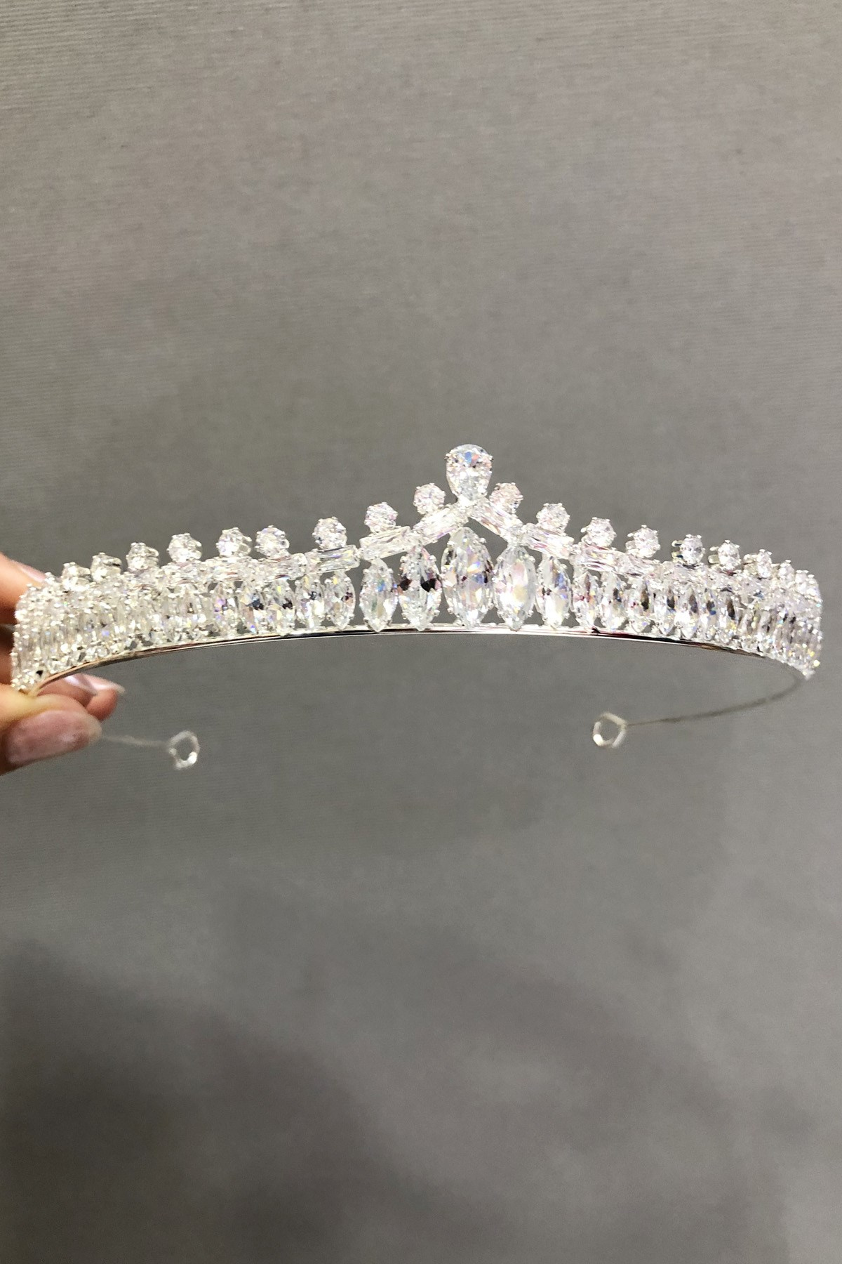 Oval Kırıklı Kristal Taşlı Gelin Tacı Kristal Cam Taşlı Saç Aksesuarı.